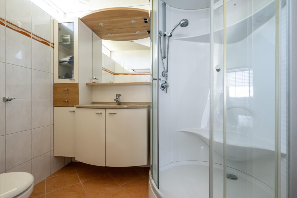 Badkamer 2 (1.25mx1.80m) met douche en wastafel.