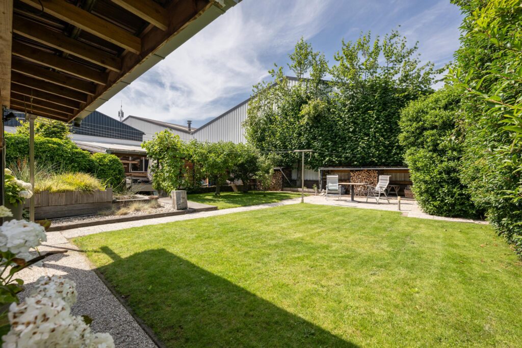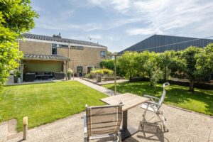 De fraai aangelegde tuin op het Zuidwesten met een zonneterras aan de voorzijde maakt het geheel af. Aan de achterzijde bevindt zich nog een royale achtertuin op het Noordwesten