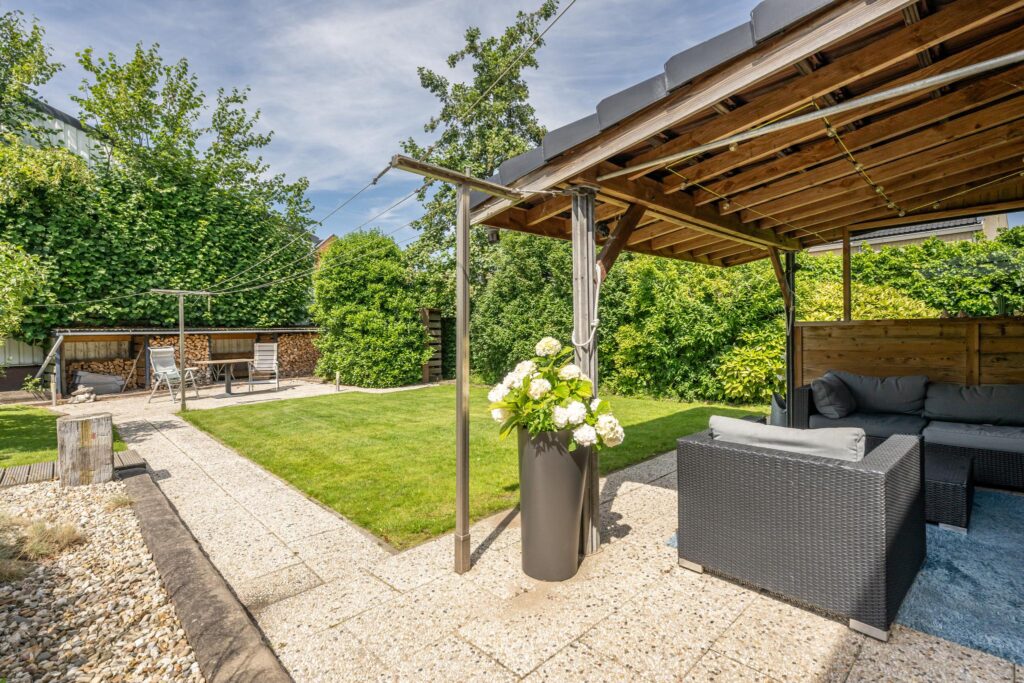 De overdekte lounge (2.90mx3.55m) is de “kers” op de taart. Ook de zijtuin (16.00mx6.00m) en voortuin met ligging op het Zuidoosten (16.00mx20.00m) met een fraai zonneterras mag er zijn!