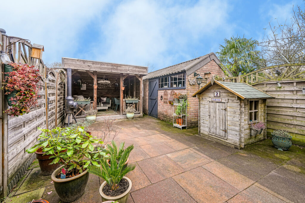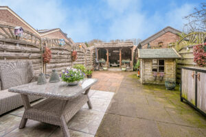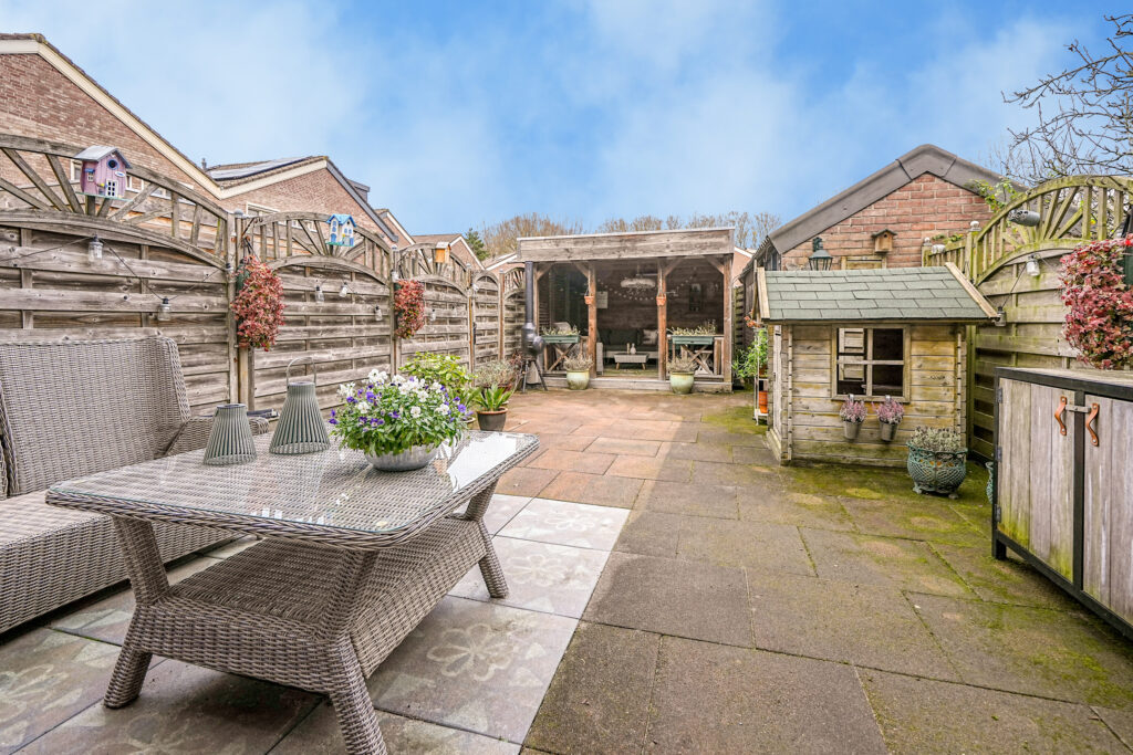 * De achtertuin is gelegen op het Noord-Oosten voorzien van een stenen schuur met toegang tot het speelveldje.