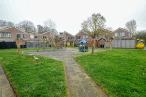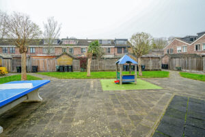Één van de grote pluspunten is de ligging: direct grenzend aan de achtertuin bevindt zich een afgeschermd speelveldje met diverse speeltoestellen. Hierdoor kunnen kinderen veilig en dichtbij spelen, terwijl je zelf geniet van rust en overzicht.