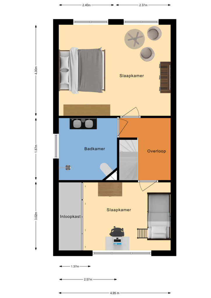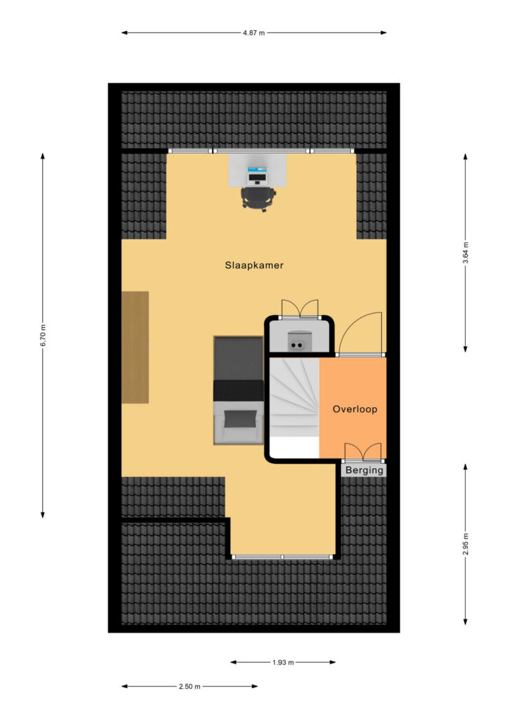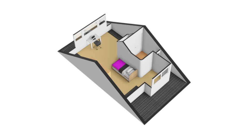 * Ruime, open zolderkamer met zowel aan de voor-als achterzijde een dakkapel.