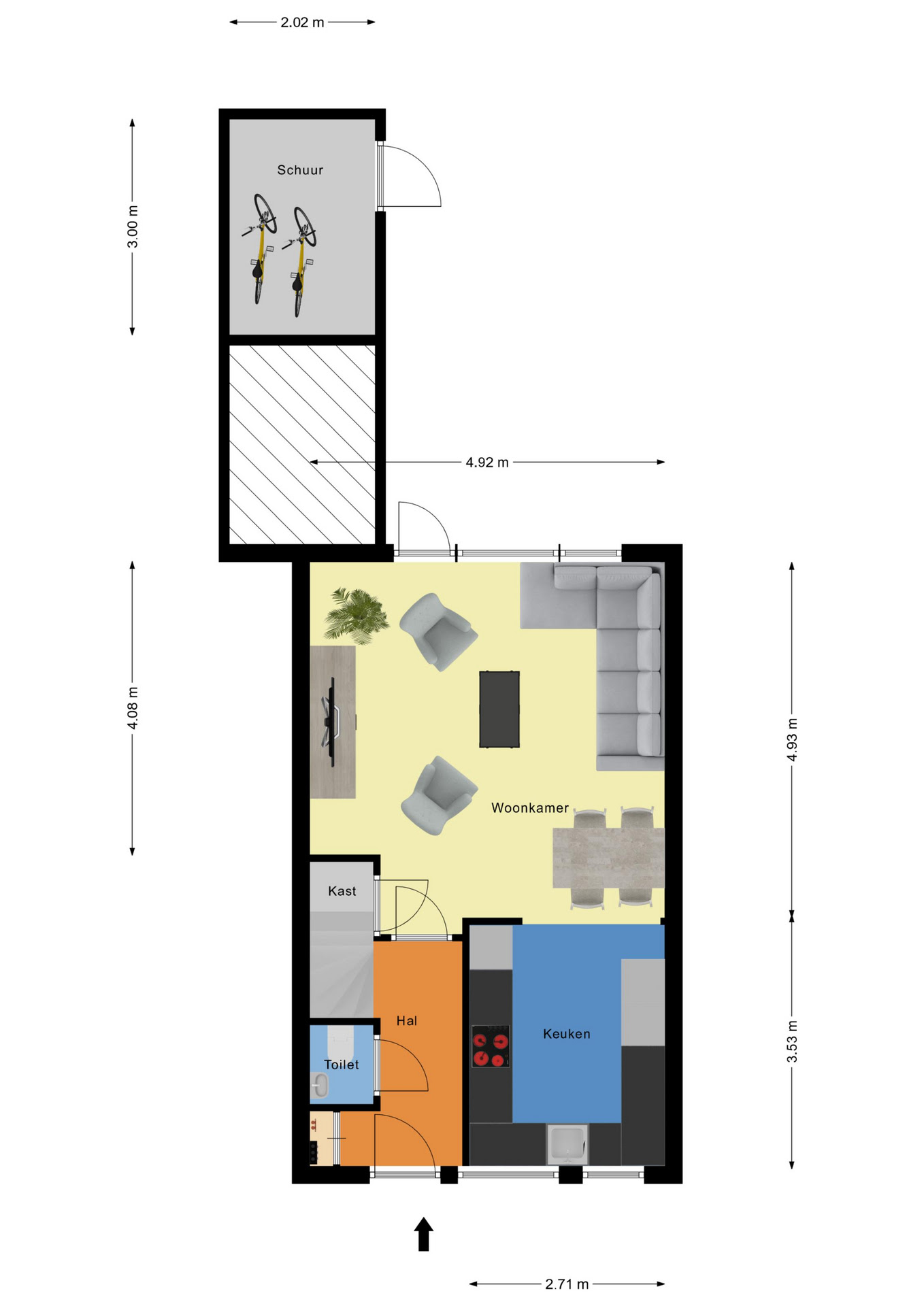 * Stenen berging (ca. 6 m2) te bereiken via de achtertuin;