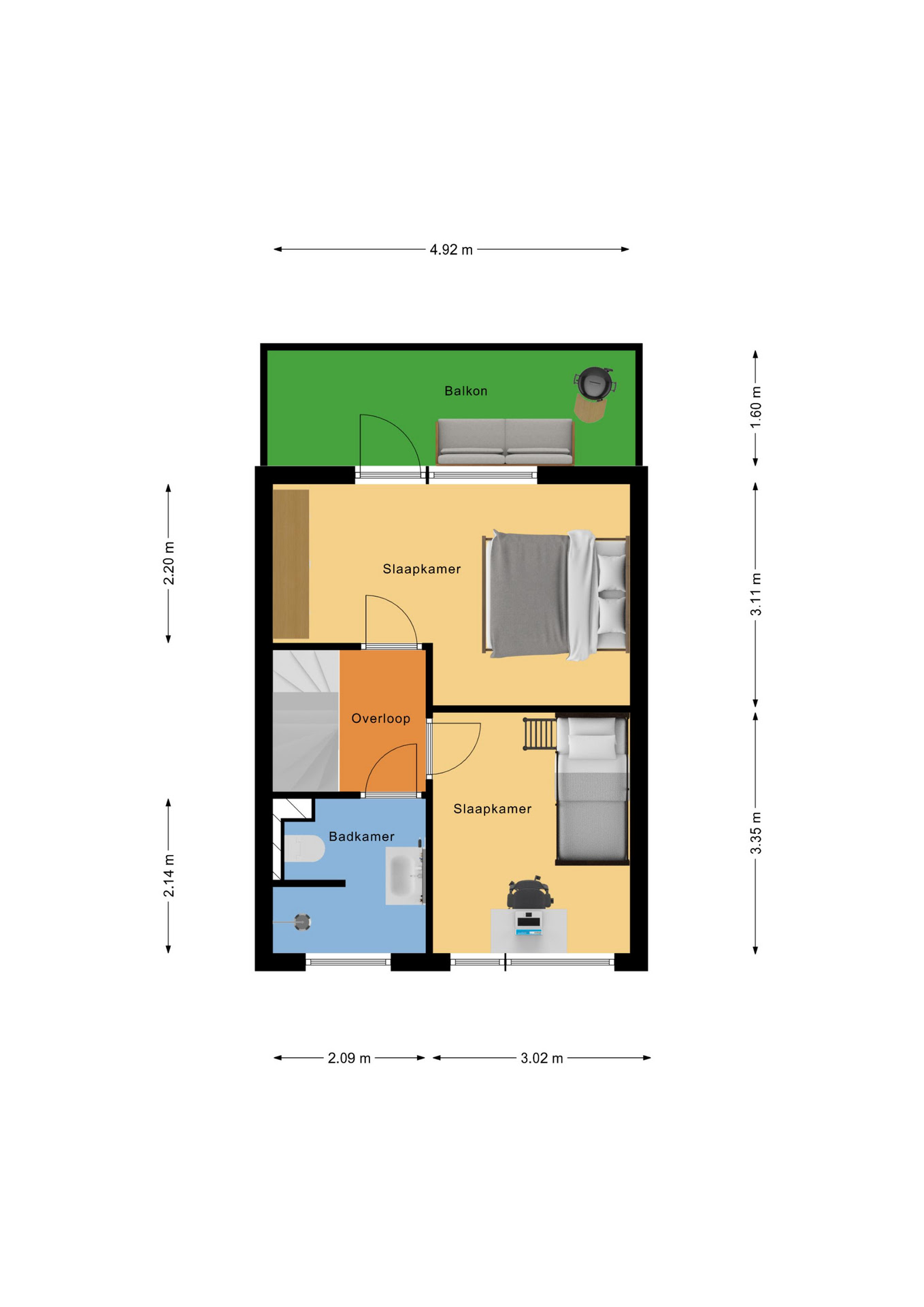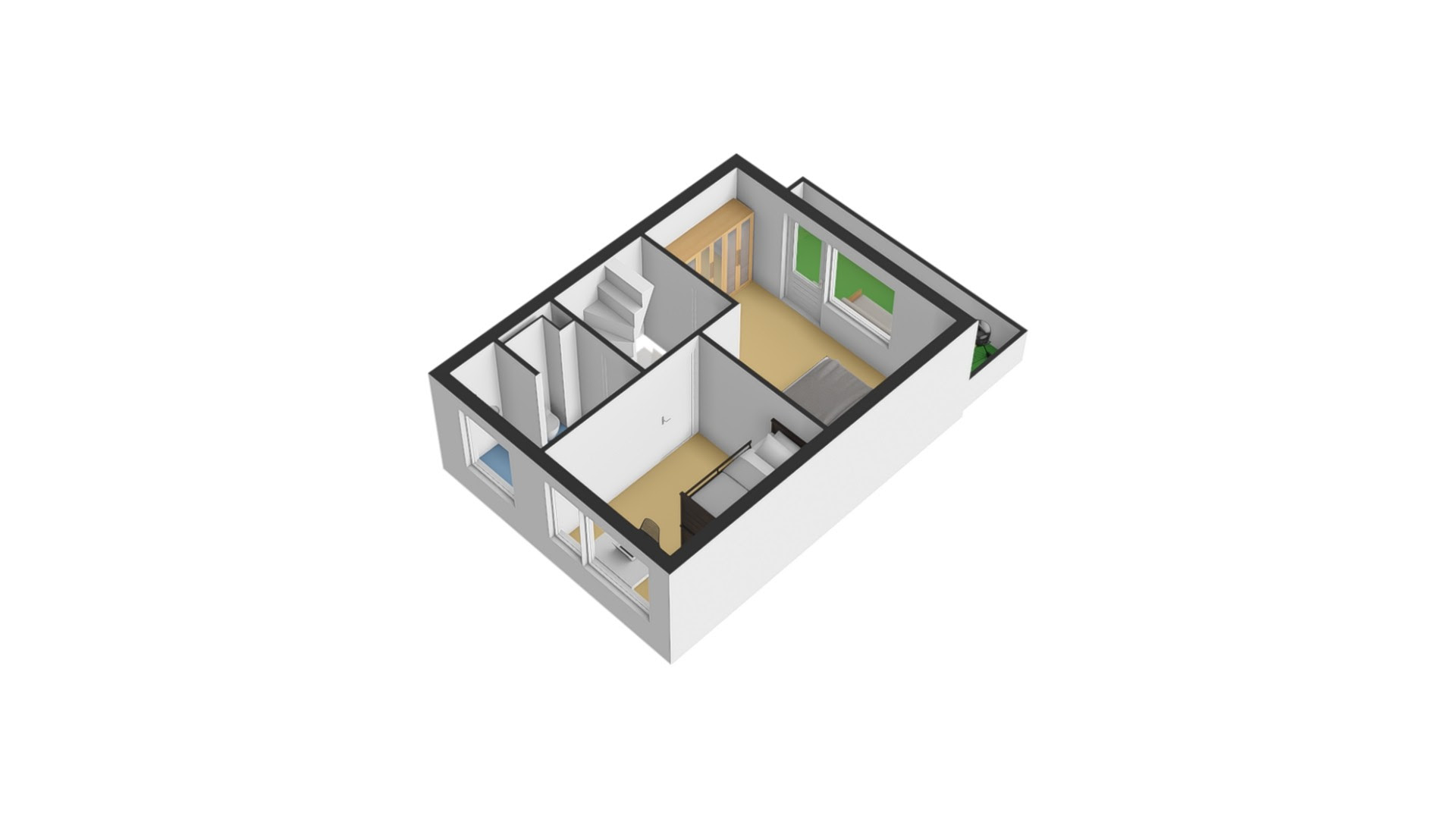 De tweede verdieping is een lichte en praktische ruimte met extra slaapkamer.