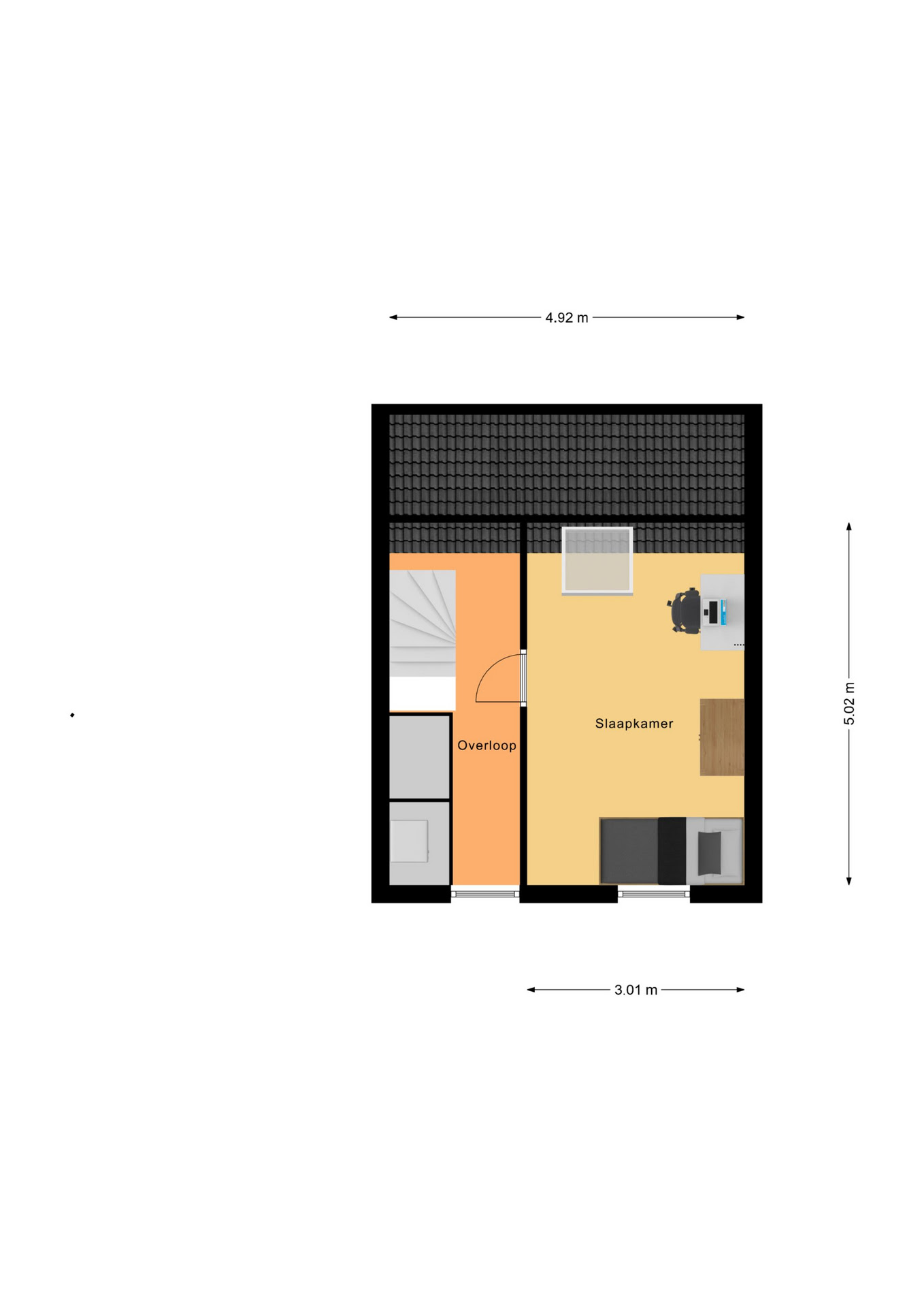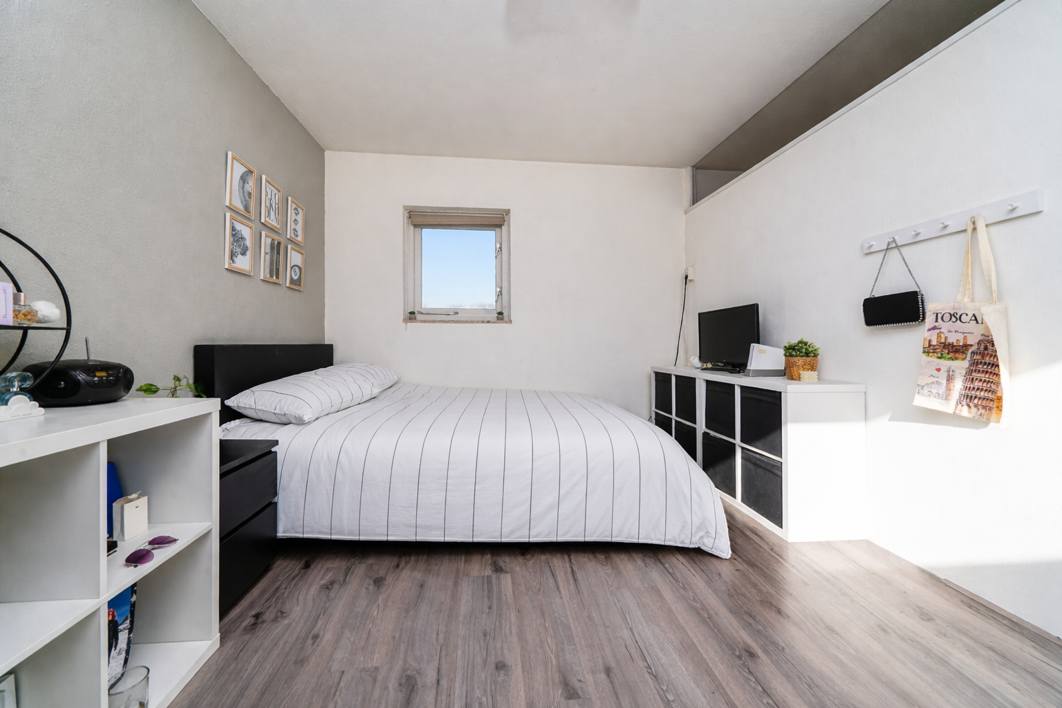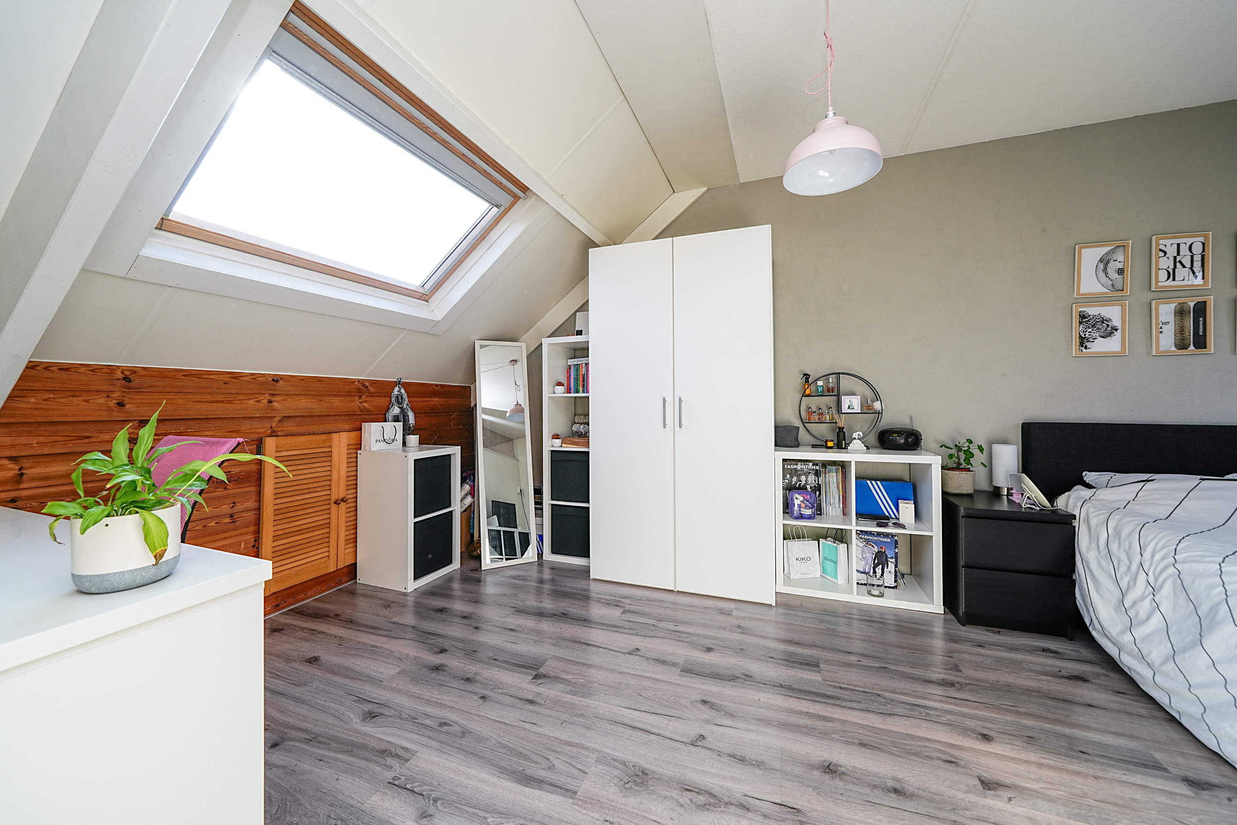 * Ruime slaapkamer met een dakraam voor extra lichtinval.
