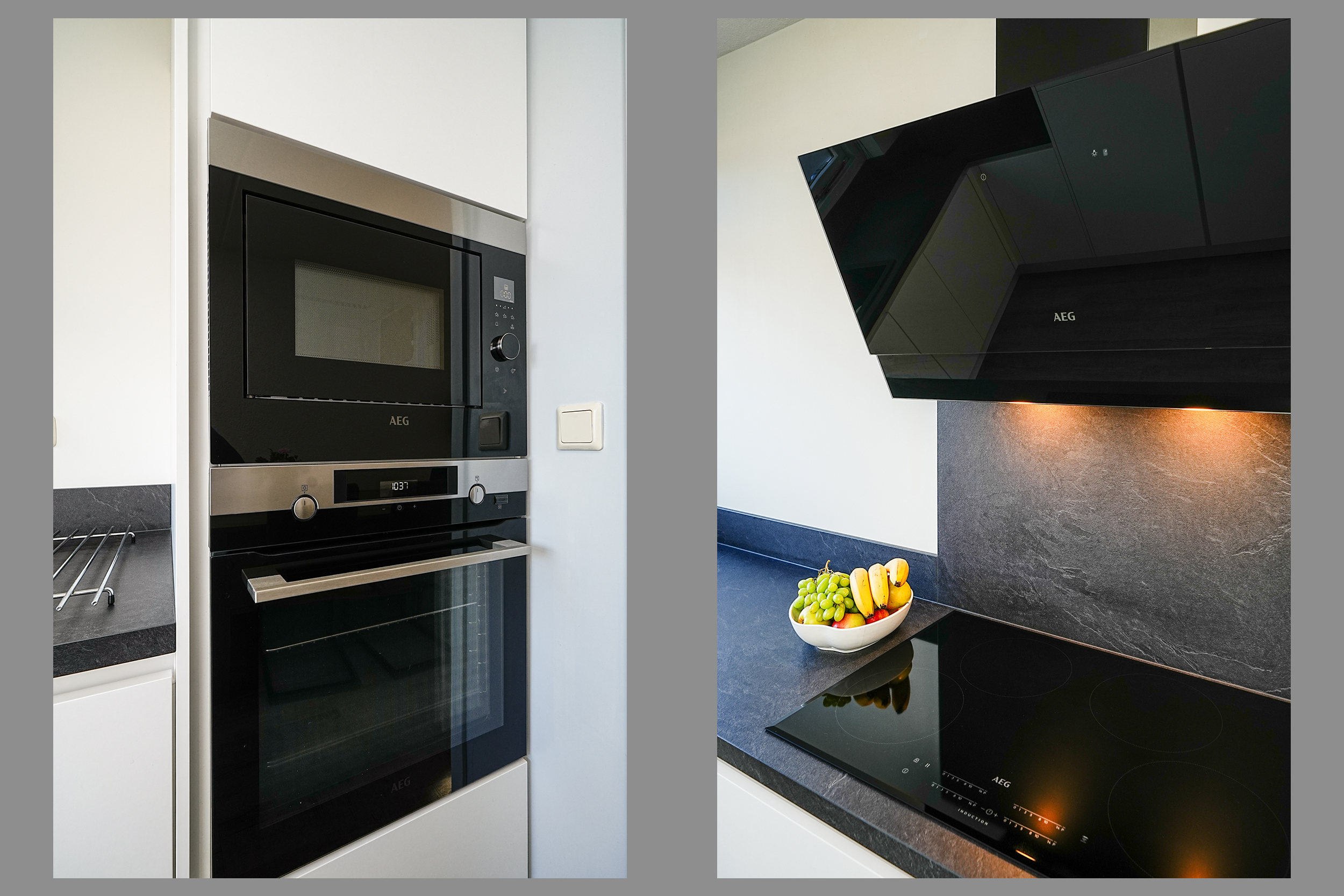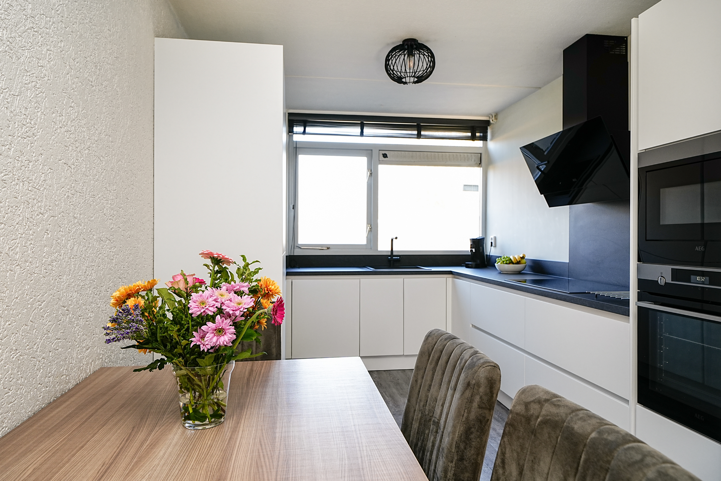 * Moderne keuken( vernieuwd in 2023) met inbouwapparatuur waaronder, een inductie kookplaat, afzuigkap, vriezer, XXL-koelkast, magnetron en een oven;