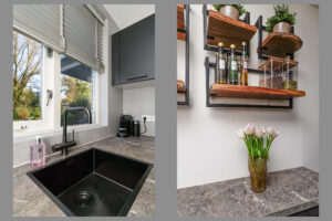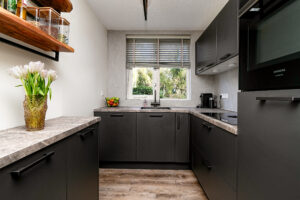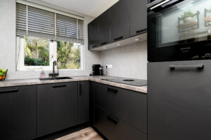 * Aan de voorzijde bevindt zich de open keuken (november 2022 geplaatst), gezet in een hoekopstelling en deze is voorzien van een Bora inductie kookplaat met afzuiging, koelkast, vaatwasser (AEG), extra grote combi-oven (Siemens) en kokend water kraan;