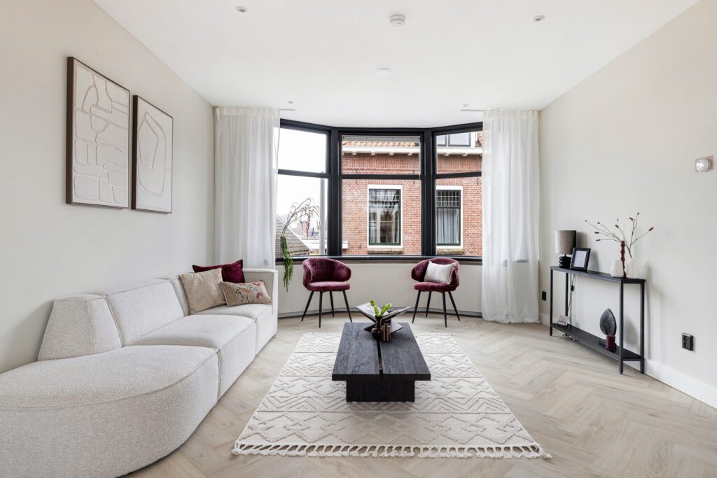 * Ruime doorzon woonkamer met erker aan de voorzijde en balkon aan de achterzijde.
