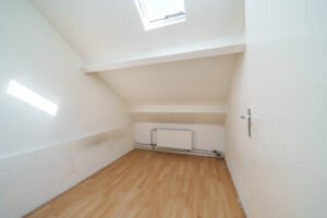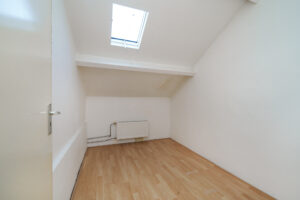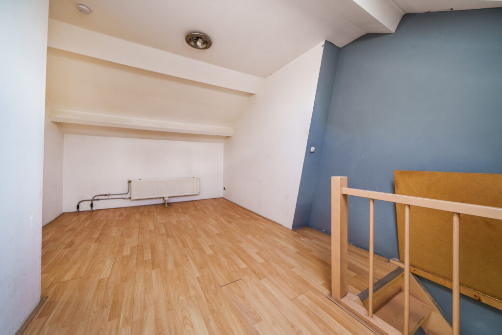 Boven de woning bevindt zich een royale zolderruimte. Deze extra ruimte biedt volop praktische mogelijkheden, maar koper dient er rekening mee te houden dat deze zolder juridisch geen eigendom wordt bij aankoop van de woning.