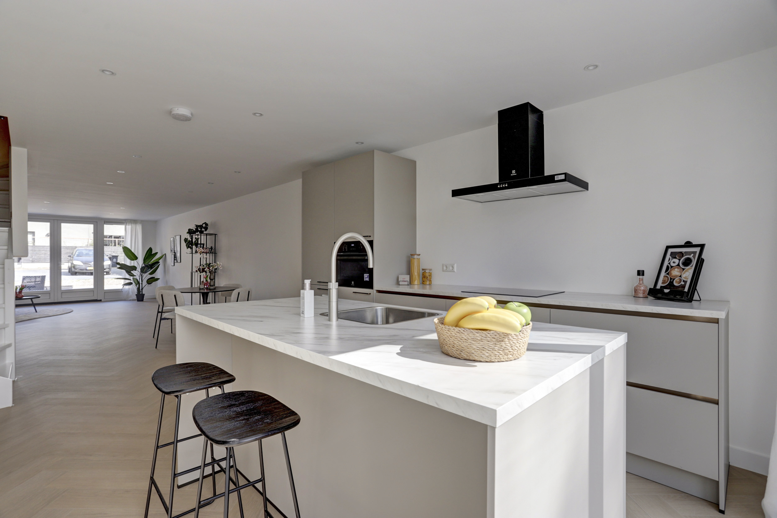De woning zelf biedt een uitstekende combinatie van ruimte (133 m2 woonoppervlakte), luxe en modern wooncomfort. Verdeeld over twee woonlagen beschikt de woning over drie volwaardige slaapkamers, ideaal voor gezinnen, thuiswerkers of gasten. De royale woonkamer vormt het hart van het huis en sluit naadloos aan op de open keuken die is uitgevoerd met een stijlvol kookeiland en voorzien is van alle benodigde inbouwapparatuur.