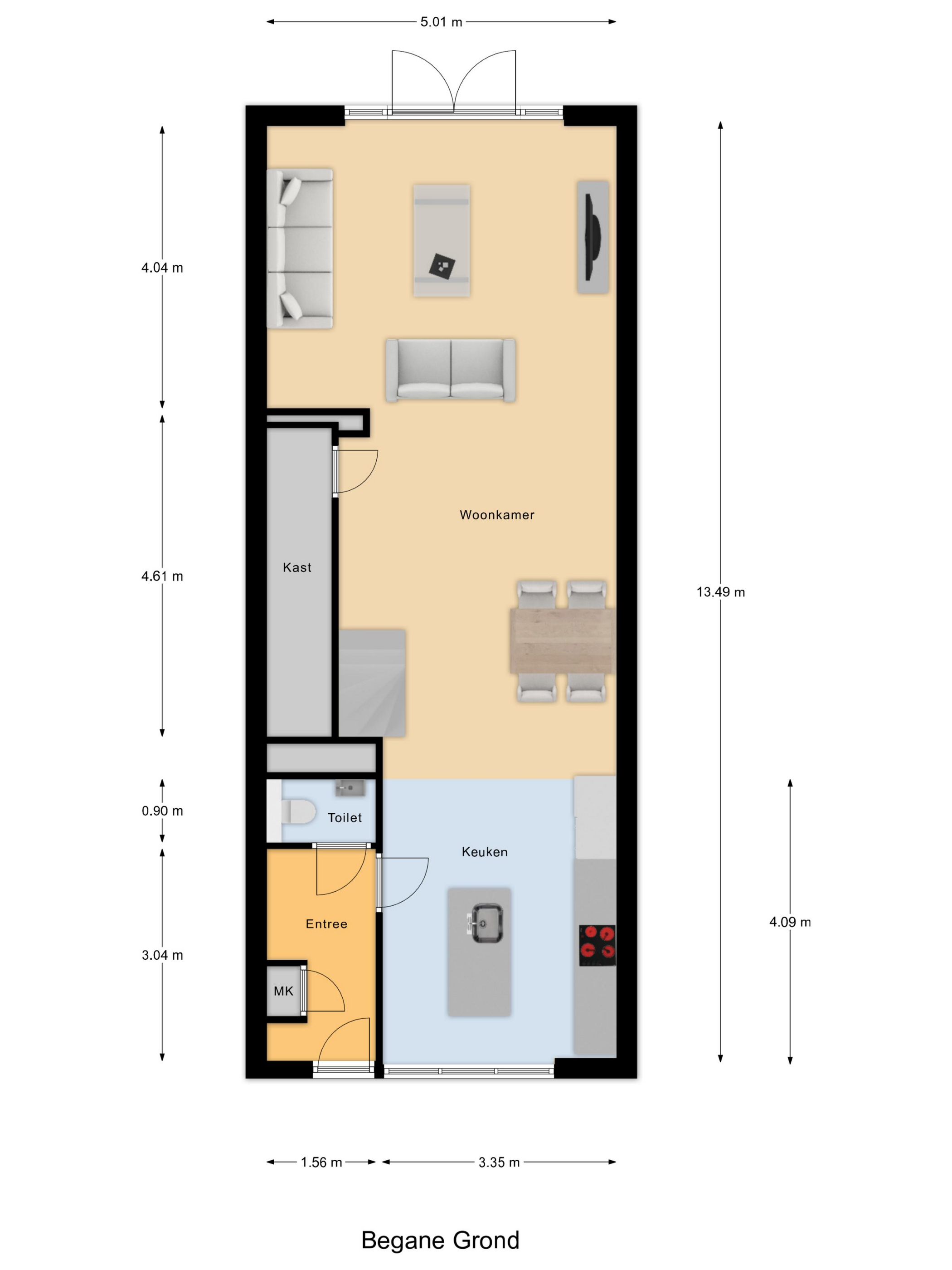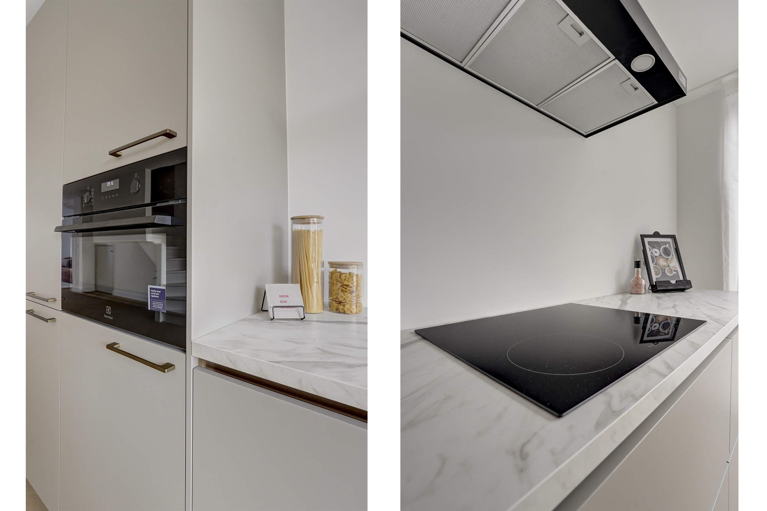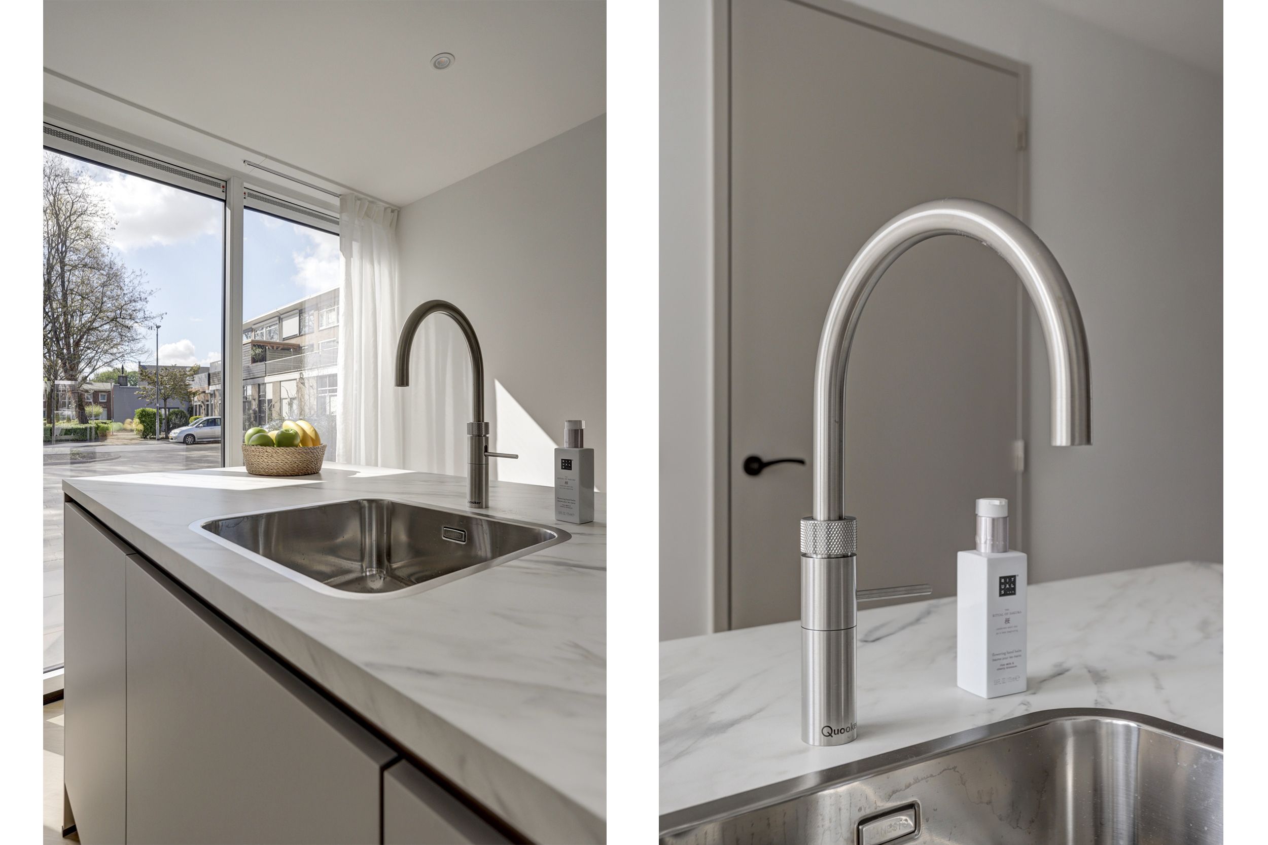 * Vanuit de hal toegang tot de open keuken aan de voorzijde. D keuken is luxe uitgevoerd met een ingebouwde vaatwasser, koel/vriescombinatie, combi oven/magnetron, inductie kookplaat, afzuigkap en een Quooker;