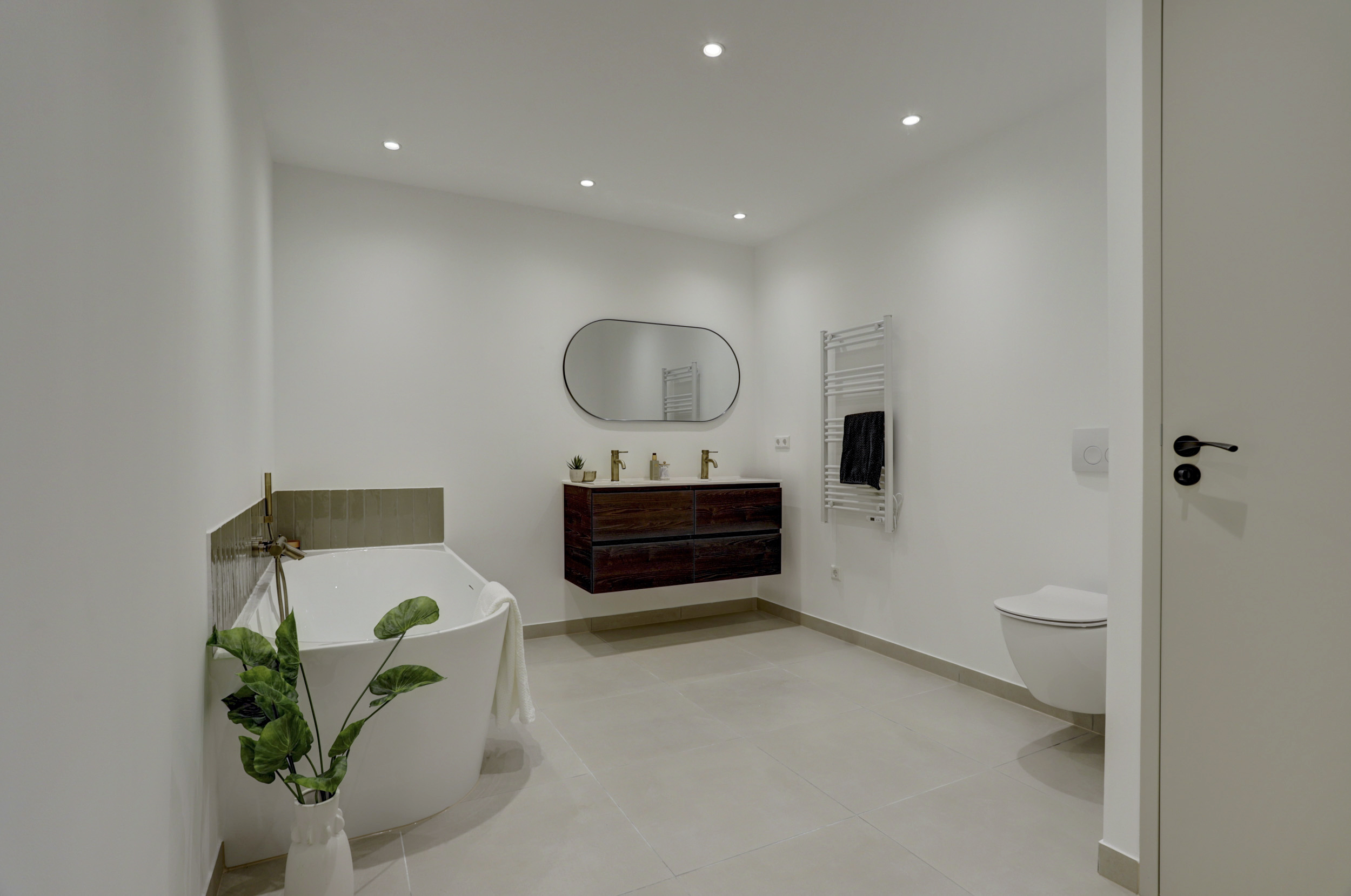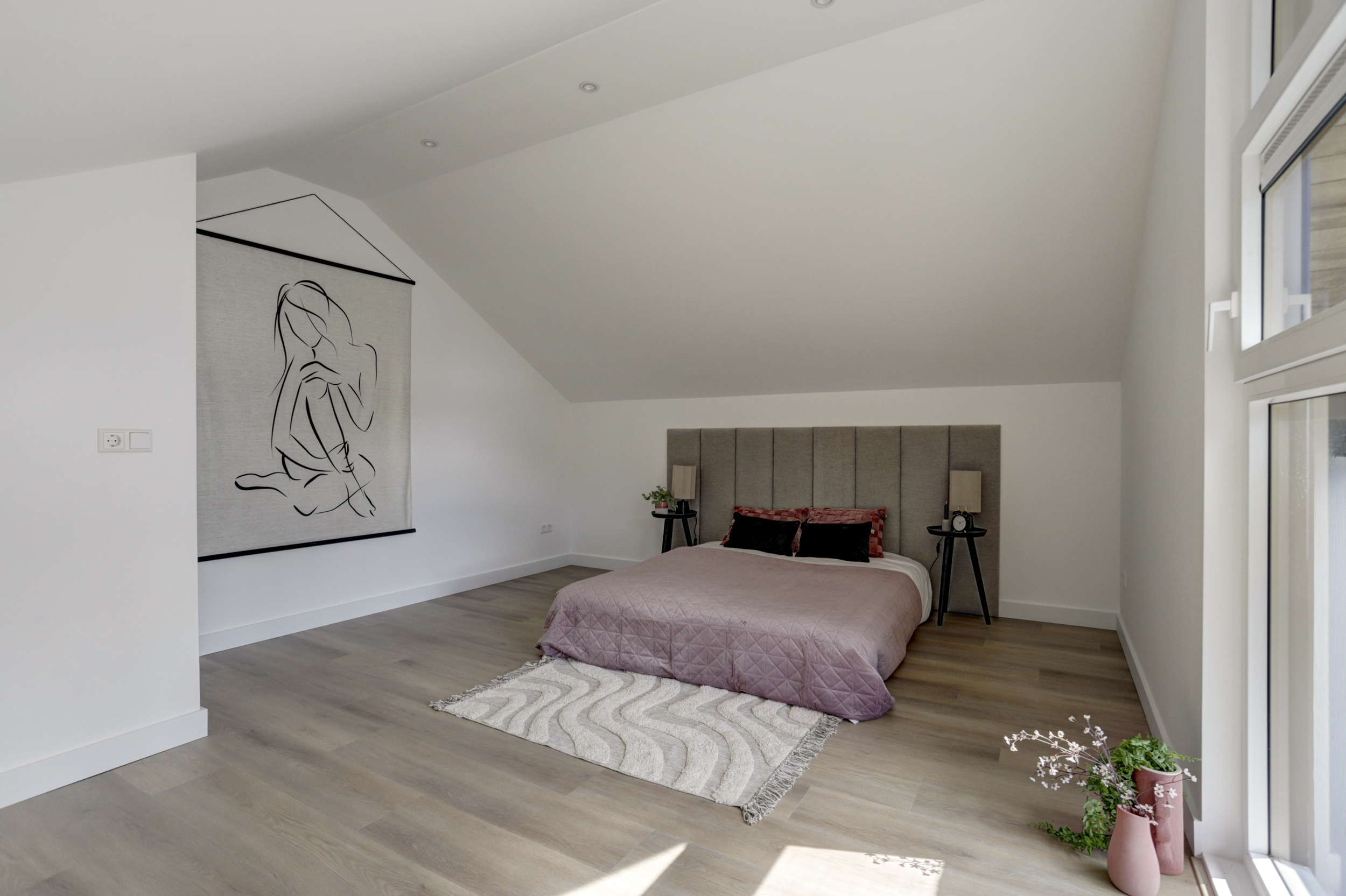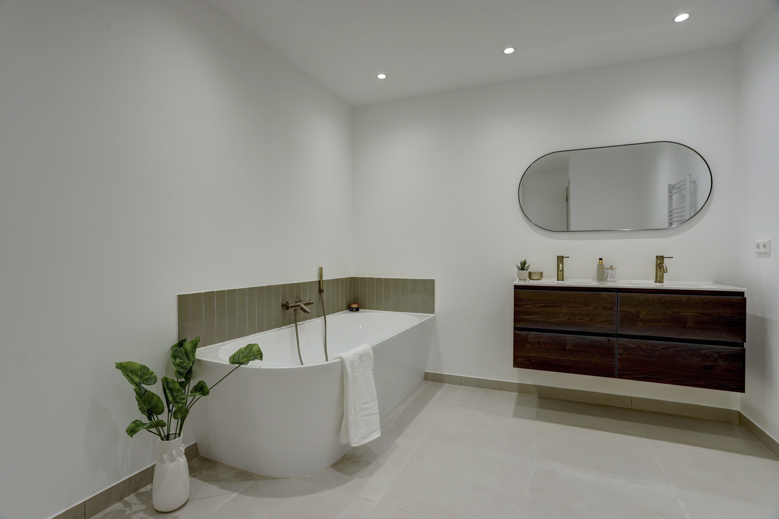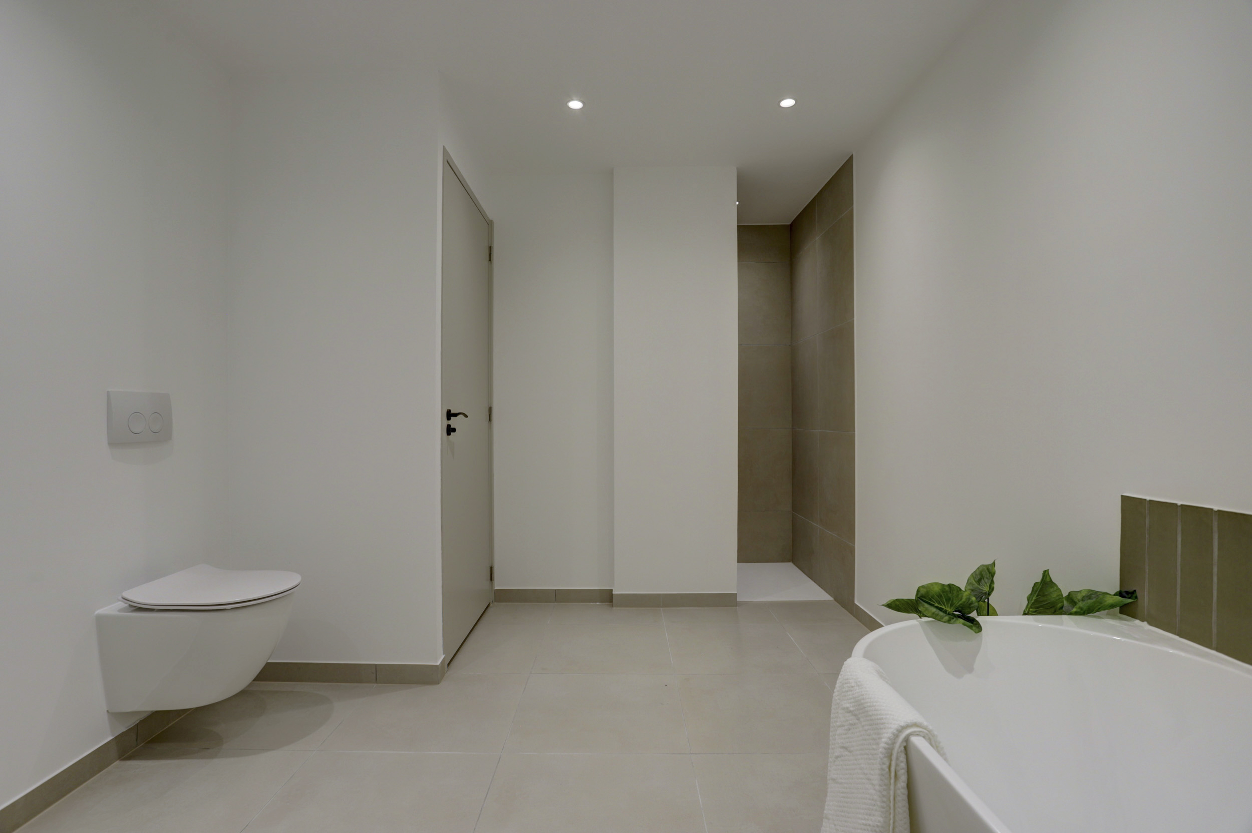 De afwerking is van hoog niveau: visgraat PVC-vloer met vloerverwarming, strak gestuukte wanden en een luxe uitstraling in alle vertrekken. De badkamer is modern en compleet uitgerust met o.a. een ligbad en een ruime inloopdouche, wat zorgt voor een comfortabele en ontspannen start of afsluiting van de dag.