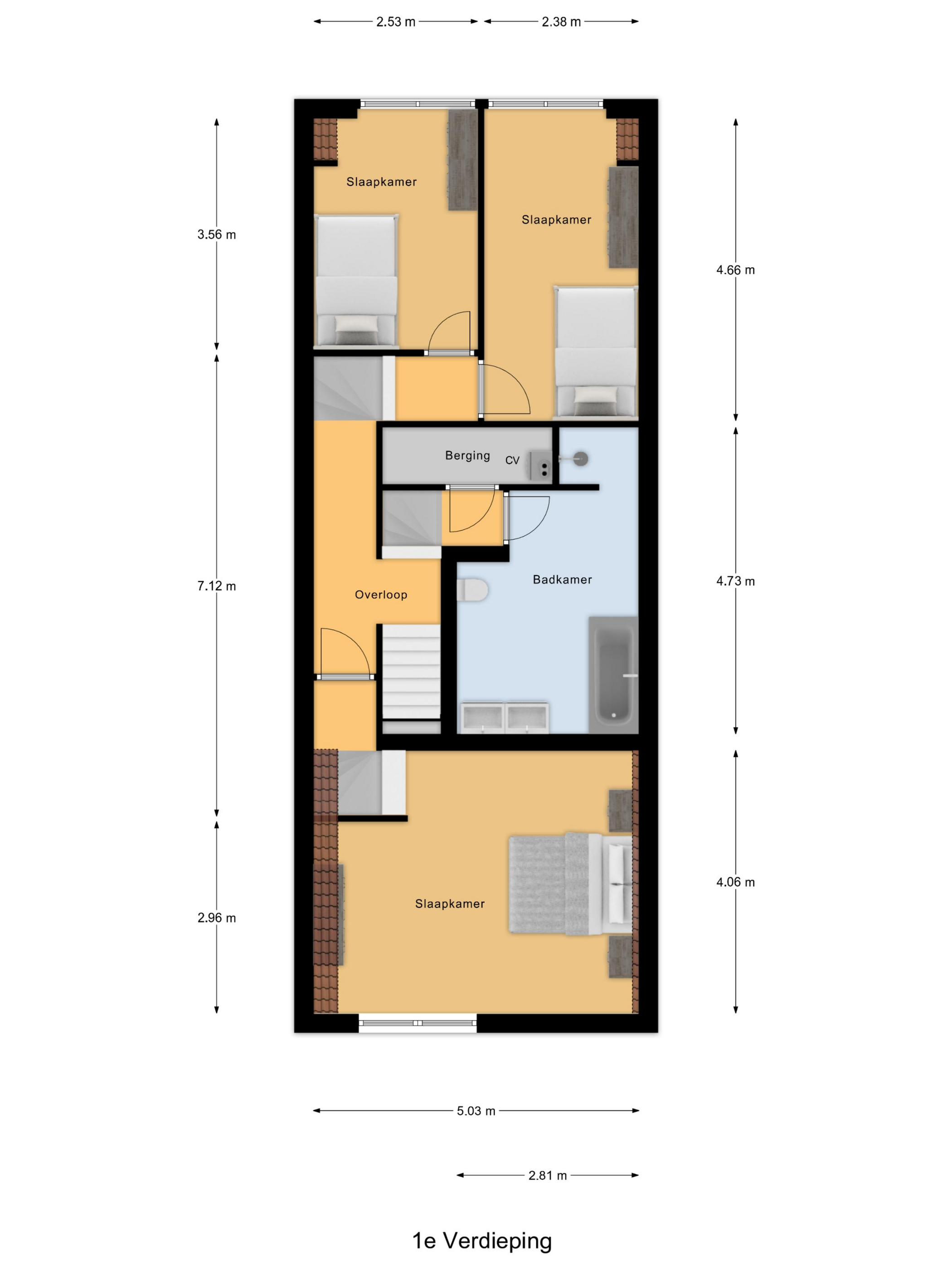 * Slaapkamer II en III bevinden zich aan de achterzijde van de woning.