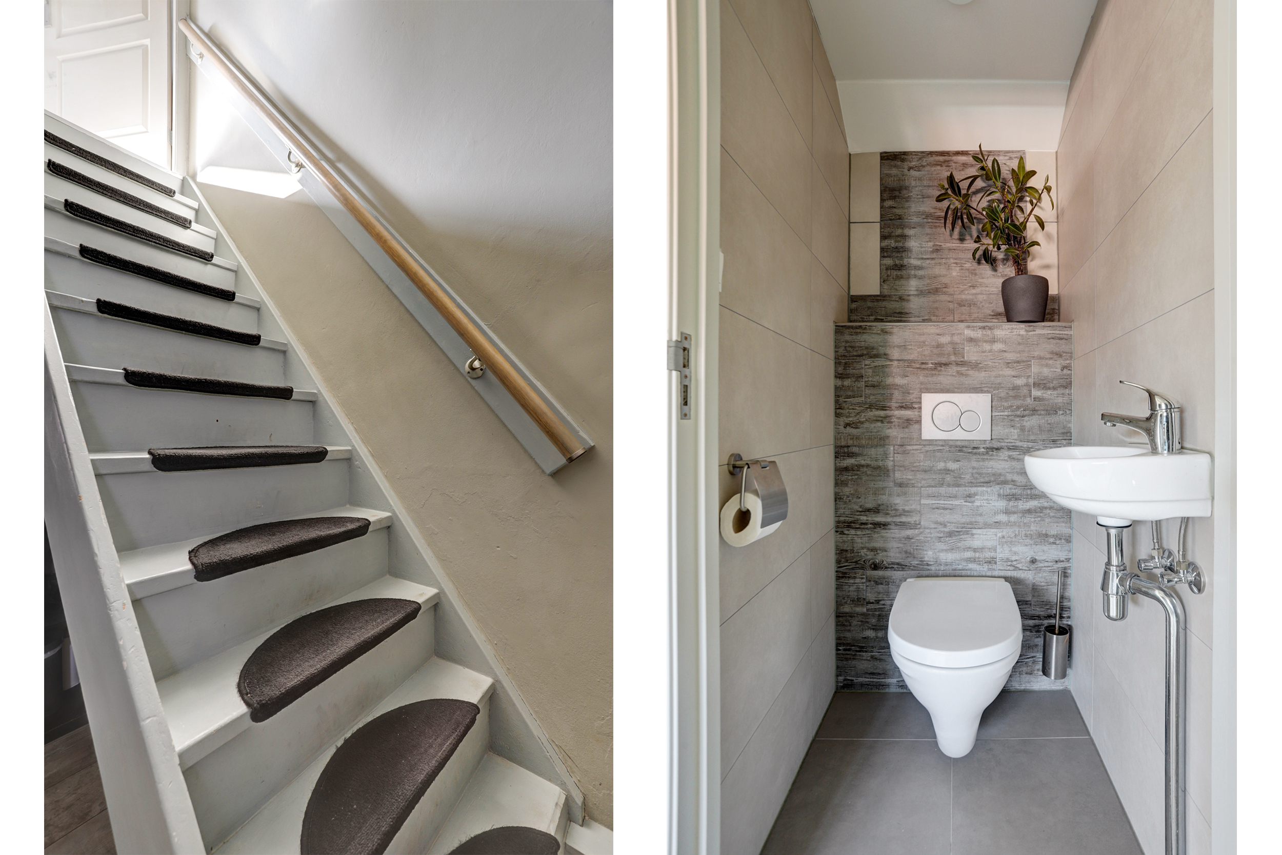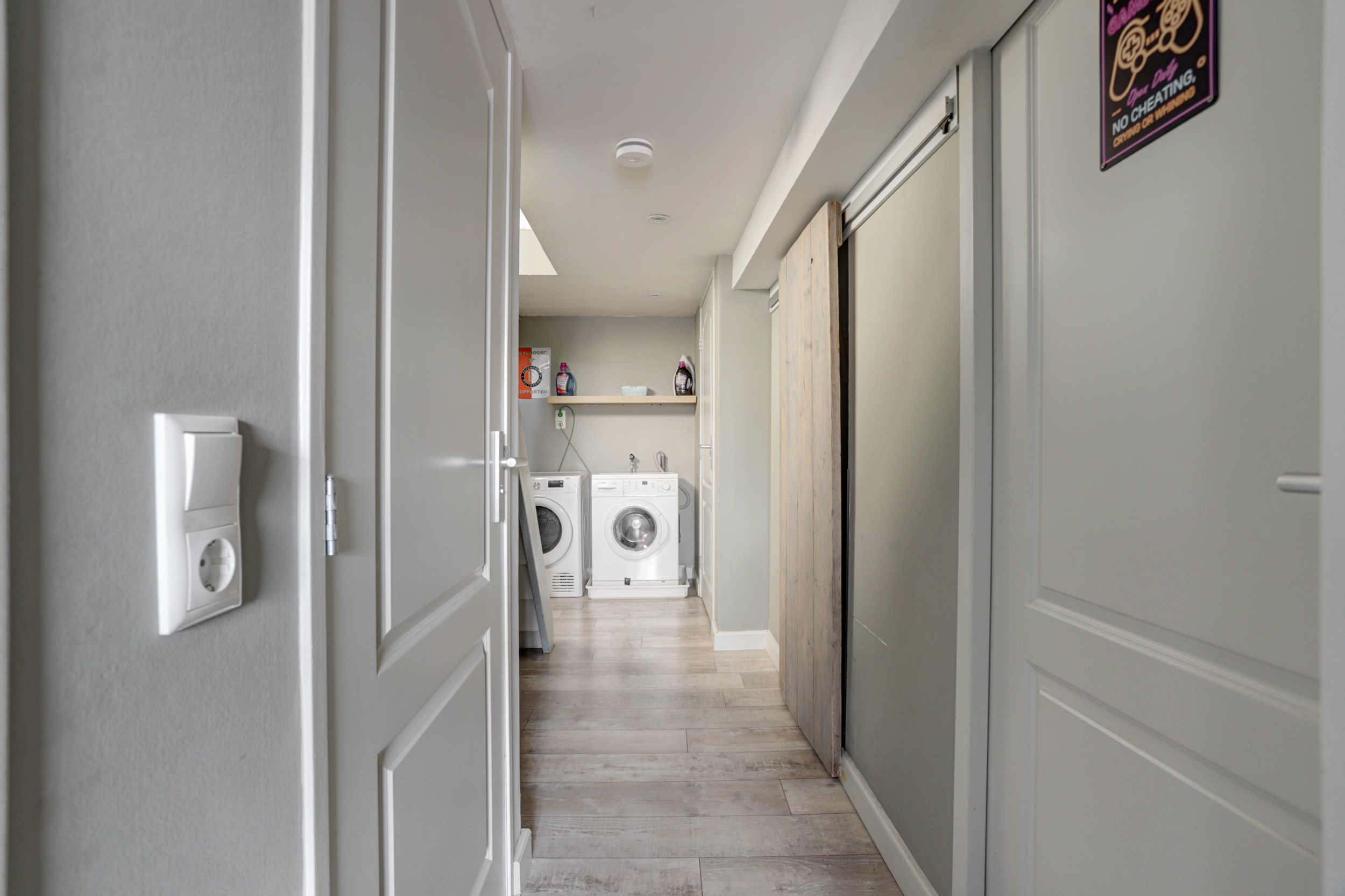 * Ruime hal met het toilet, wasmachine-en droger-opstelling, de meterkast-opstelling met slimme meters en toegang tot de overige vertrekken.