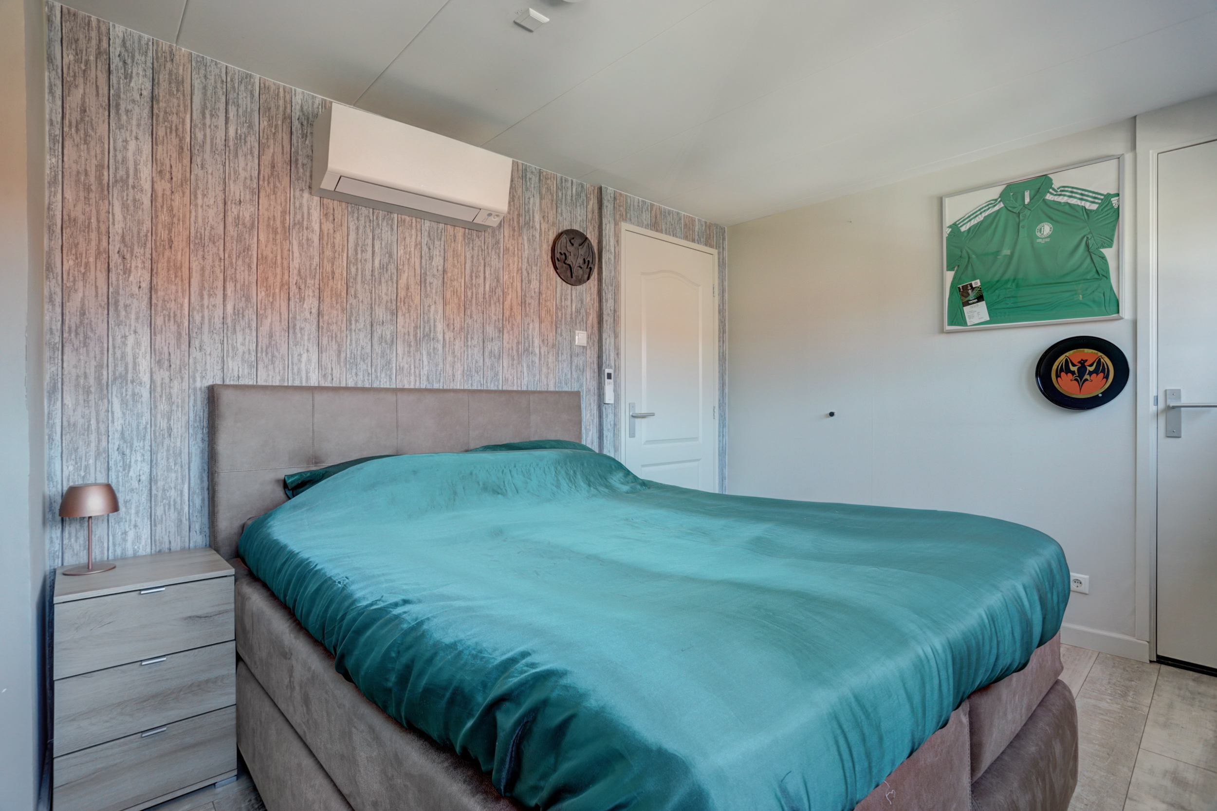 * Slaapkamer II is gelegen aan de voorzijde en is voorzien van airconditioning en bergruimte achter het knieschot. In de slaapkamer is een vaste kast gesitueerd met daarin de cv-opstelling en de omvormer van de zonnepanelen.
