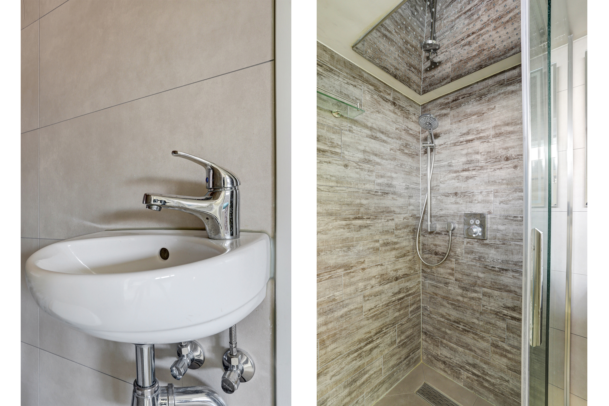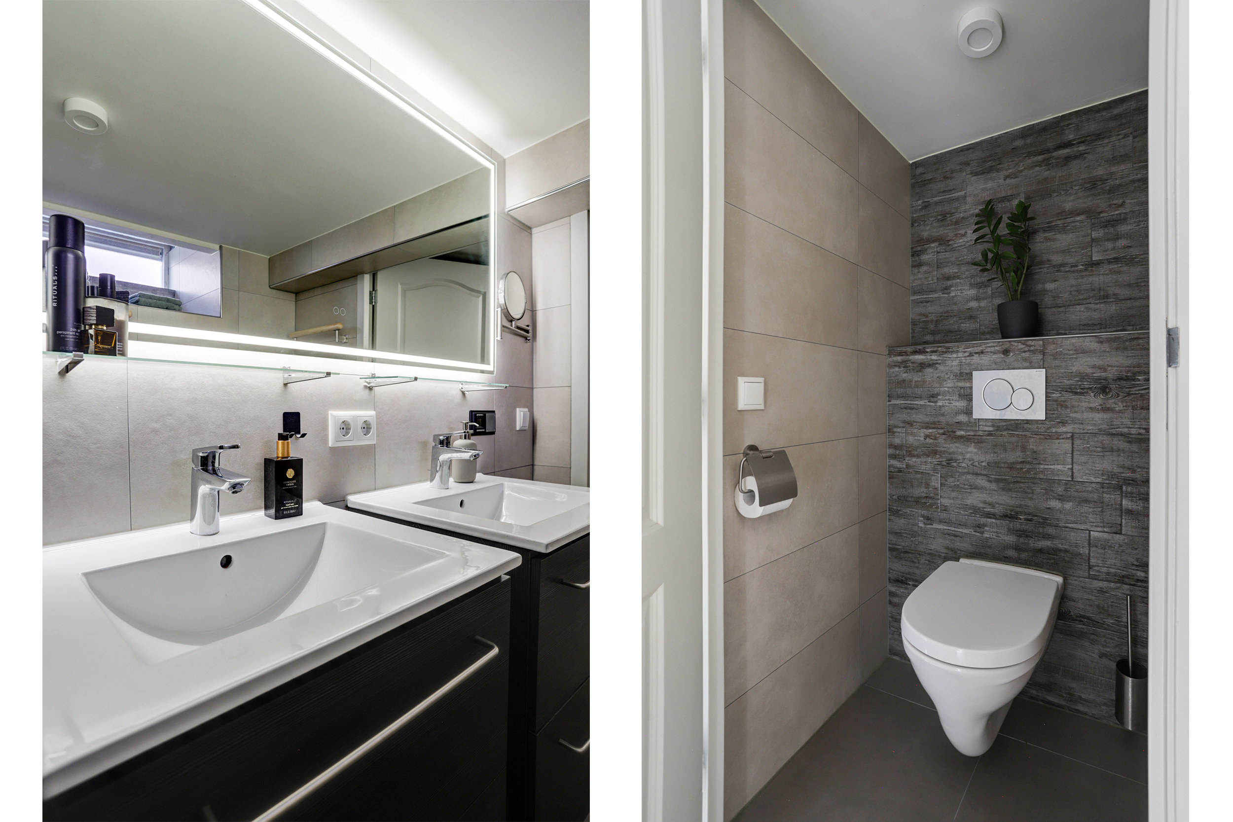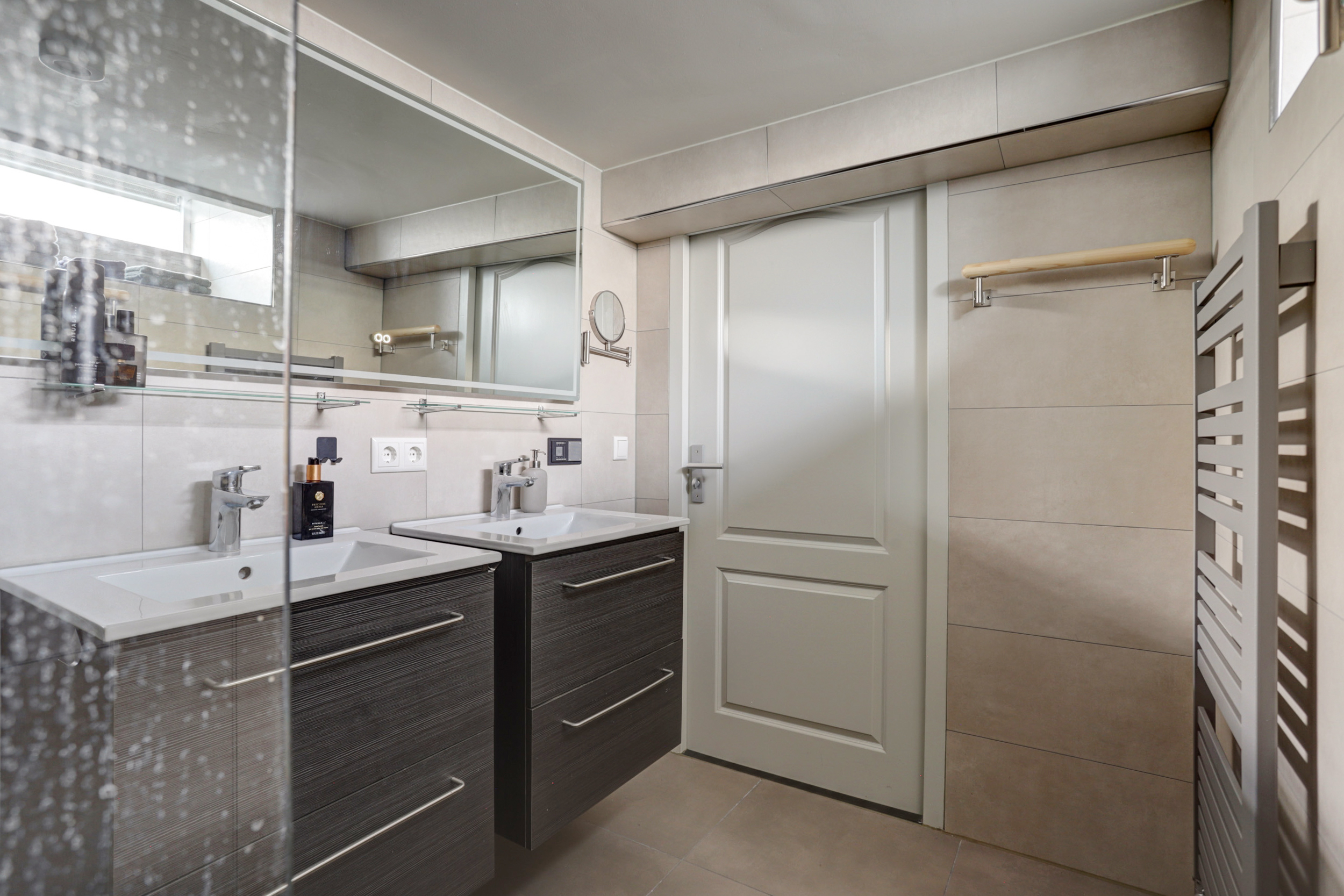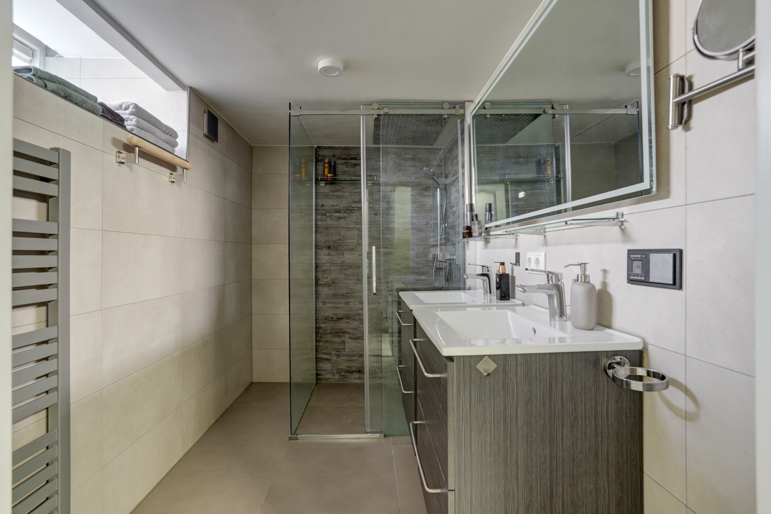 * De badkamer (2019) is voorzien van een dubbele wastafel met een verlichte spiegel, een ruime inloopdouche en is tevens voorzien van mechanische afzuiging.