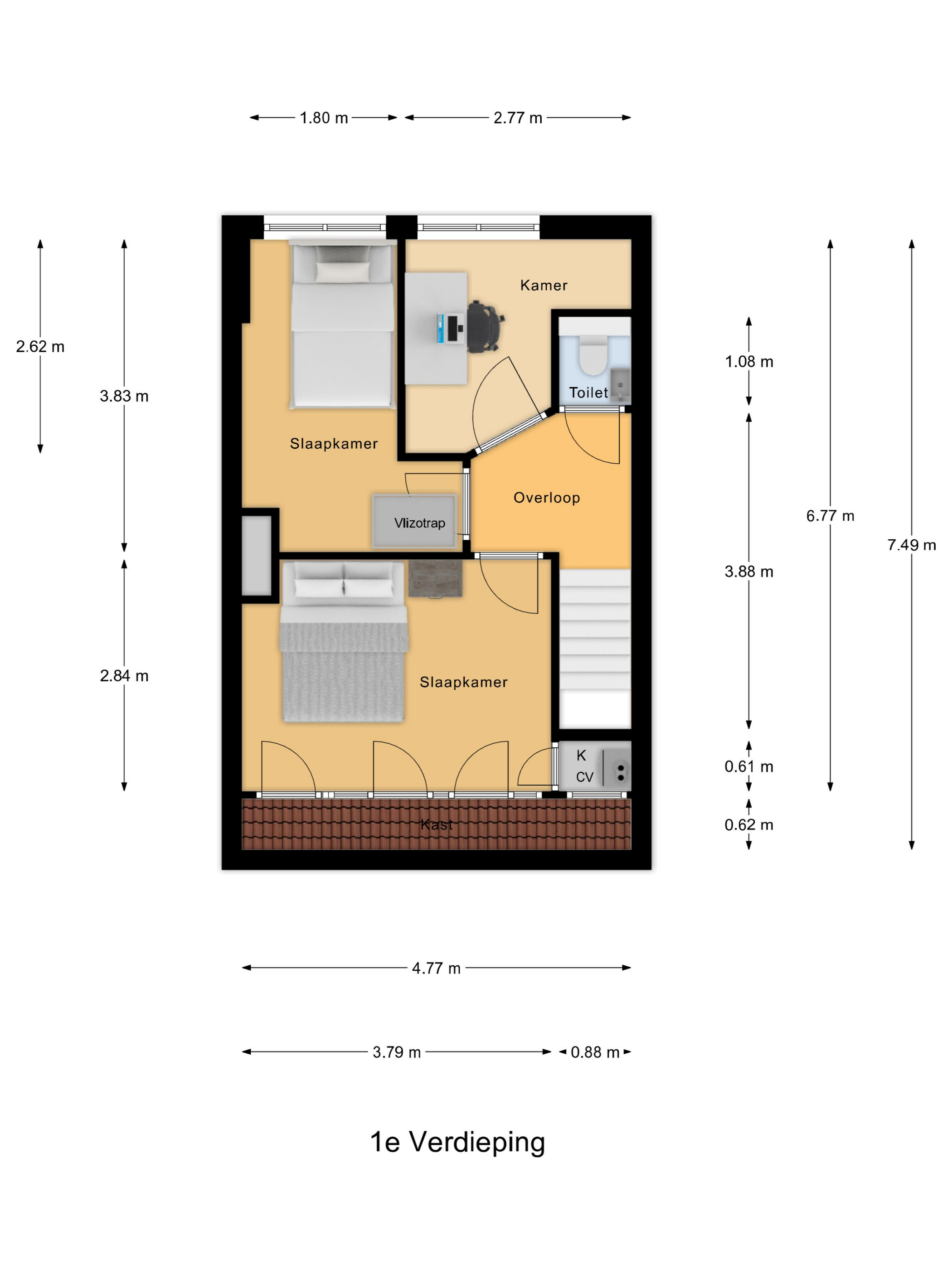 * Slaapkamer III en IV zijn aan de achterzijde gelegen, waarvan één kamer voorzien is van de vlizotrap naar de zolder. Beide slaapkamers zijn voorzien van een dakopbouw.