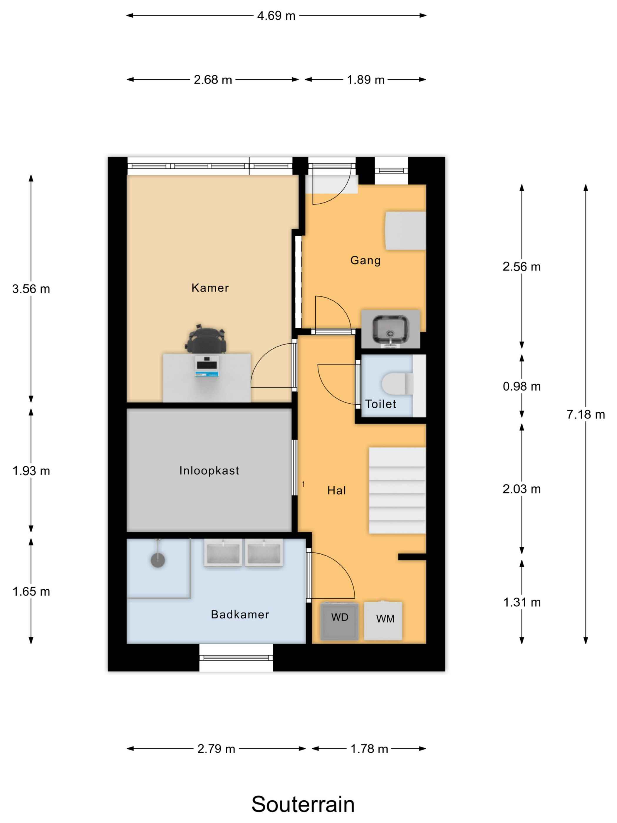 * Aan de achterzijde van het souterrain bevindt zich een extra (werk)kamer, een inloopkast en een bijkeuken met toegang tot de achtertuin.