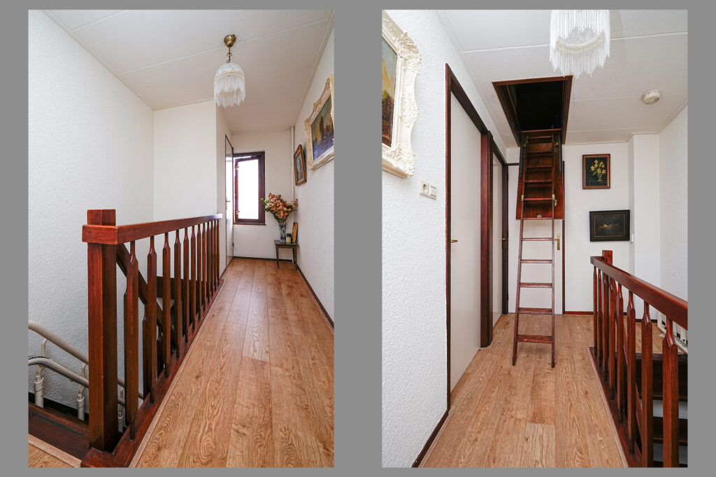 * De overloop met kast met de wasmachineaansluiting geeft toegang tot 2 slaapkamers en badkamer;