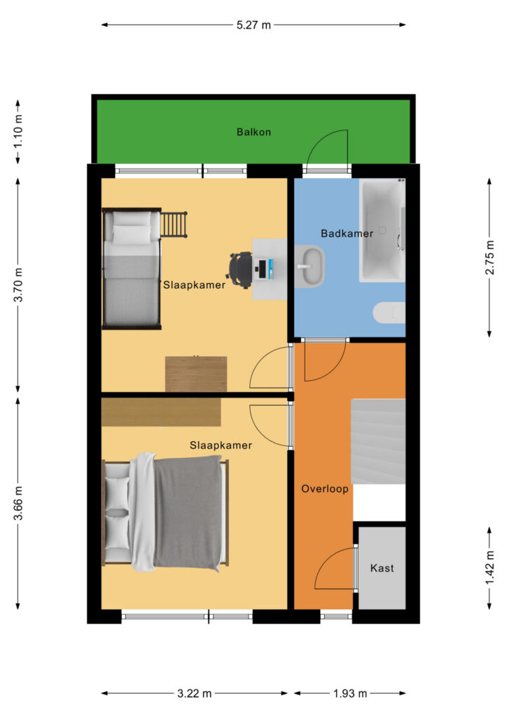 * Slaapkamer I is gelegen aan de voorzijde van de woning;