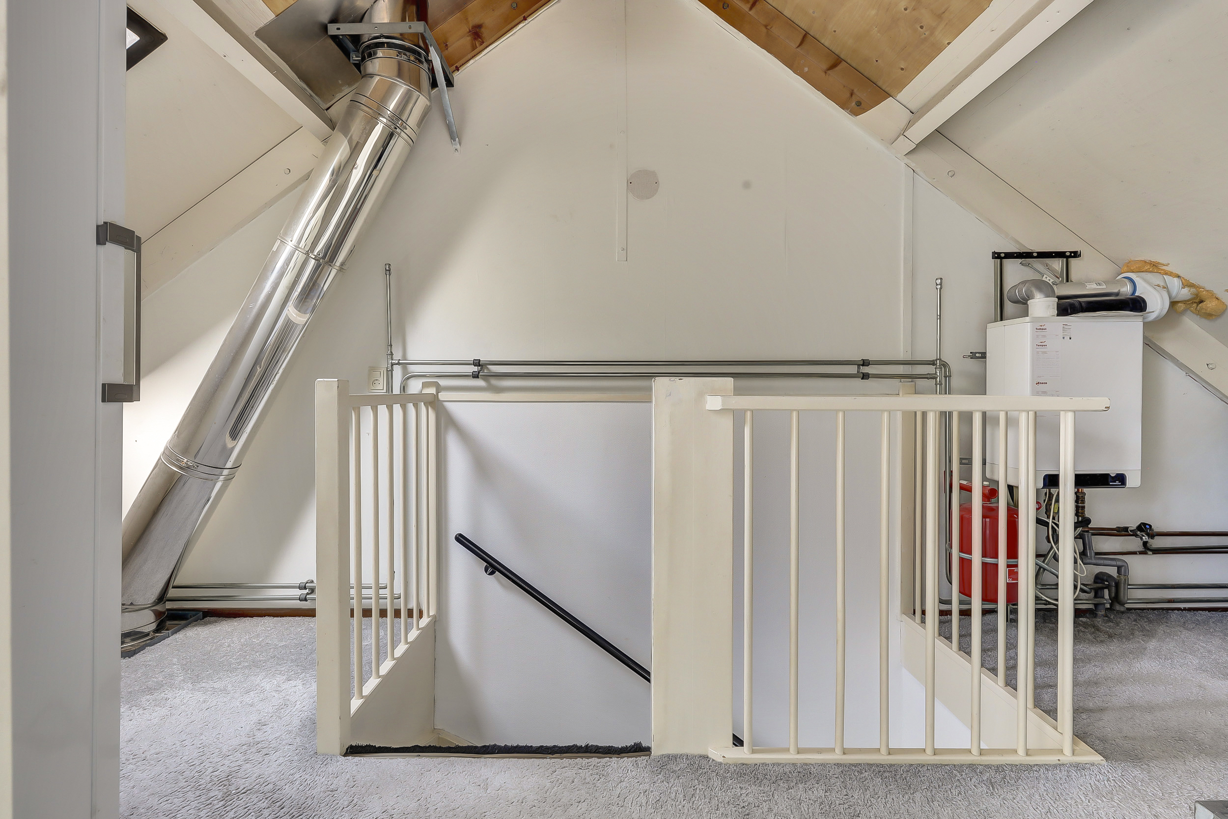 * Overloop met opstelling Cv-ketel en de wasmachine/droger-aansluiting.