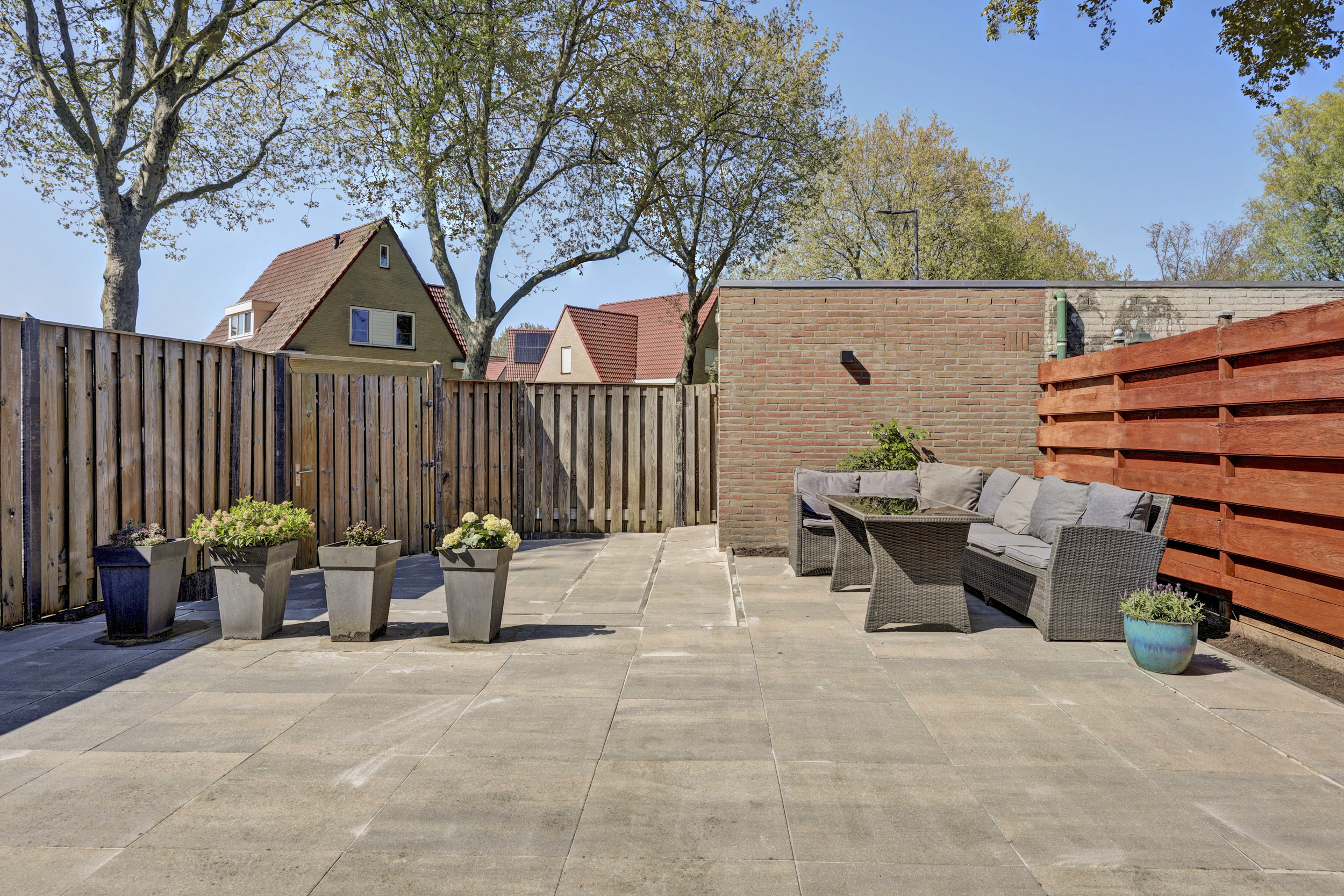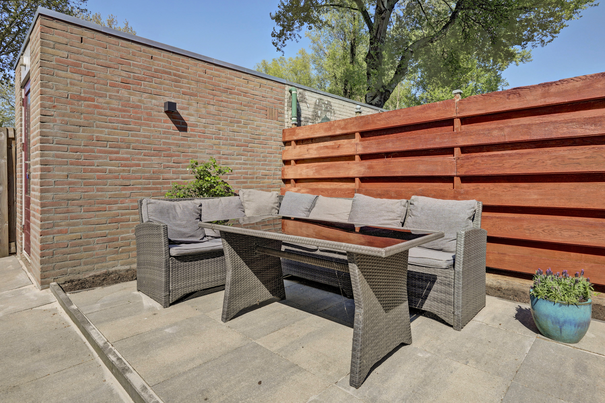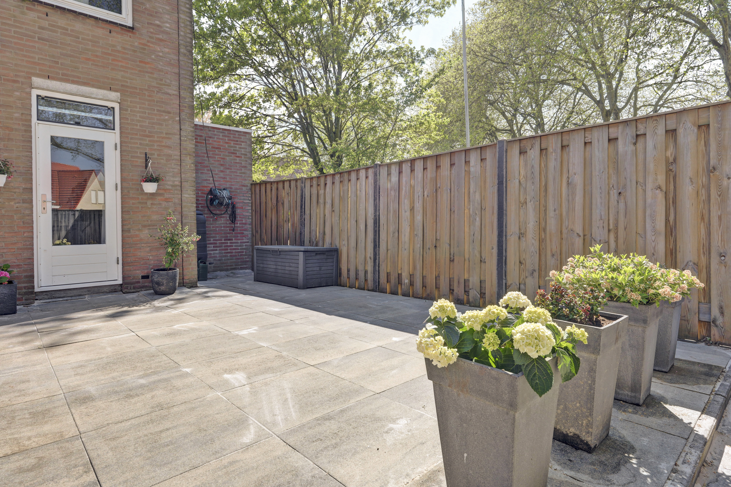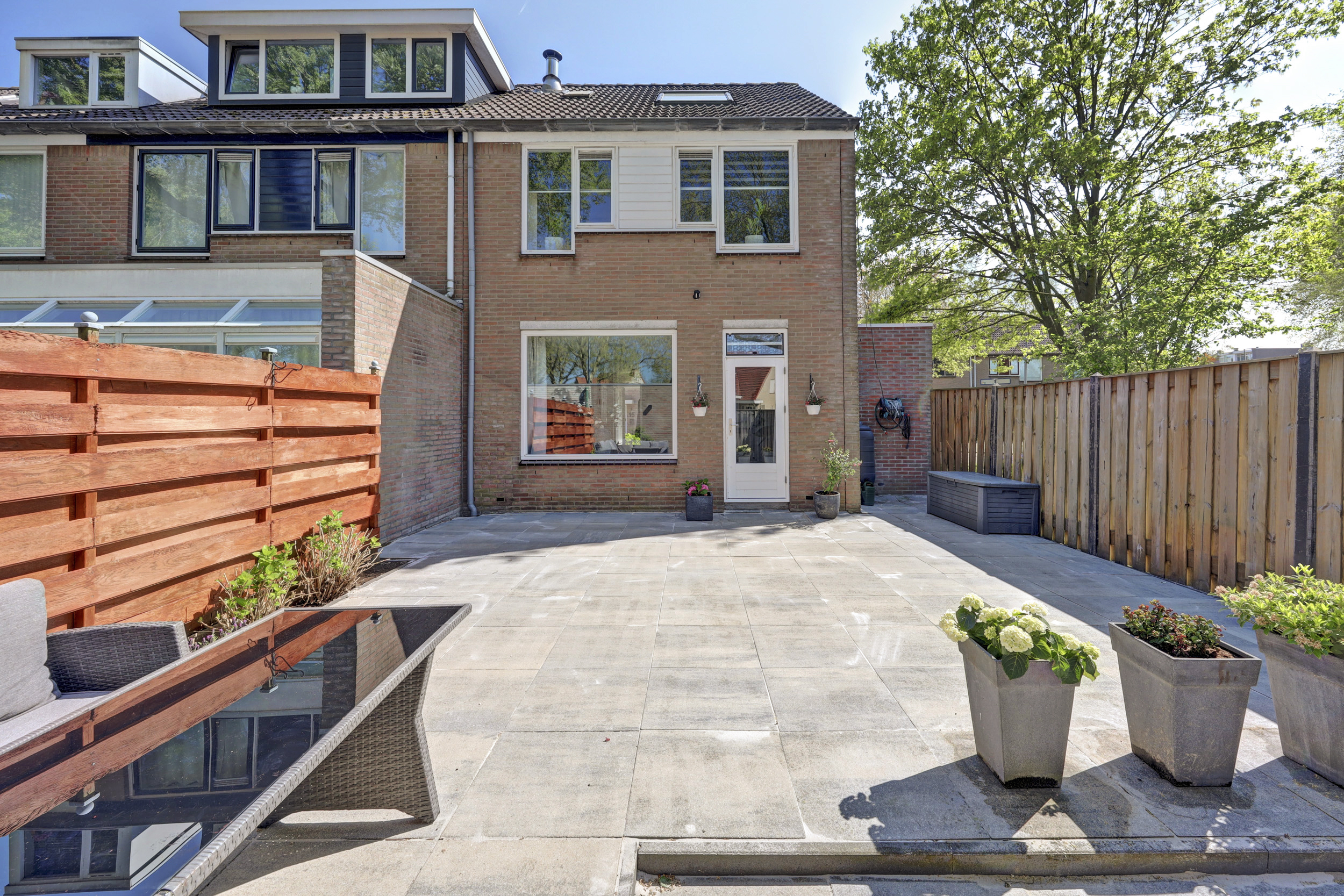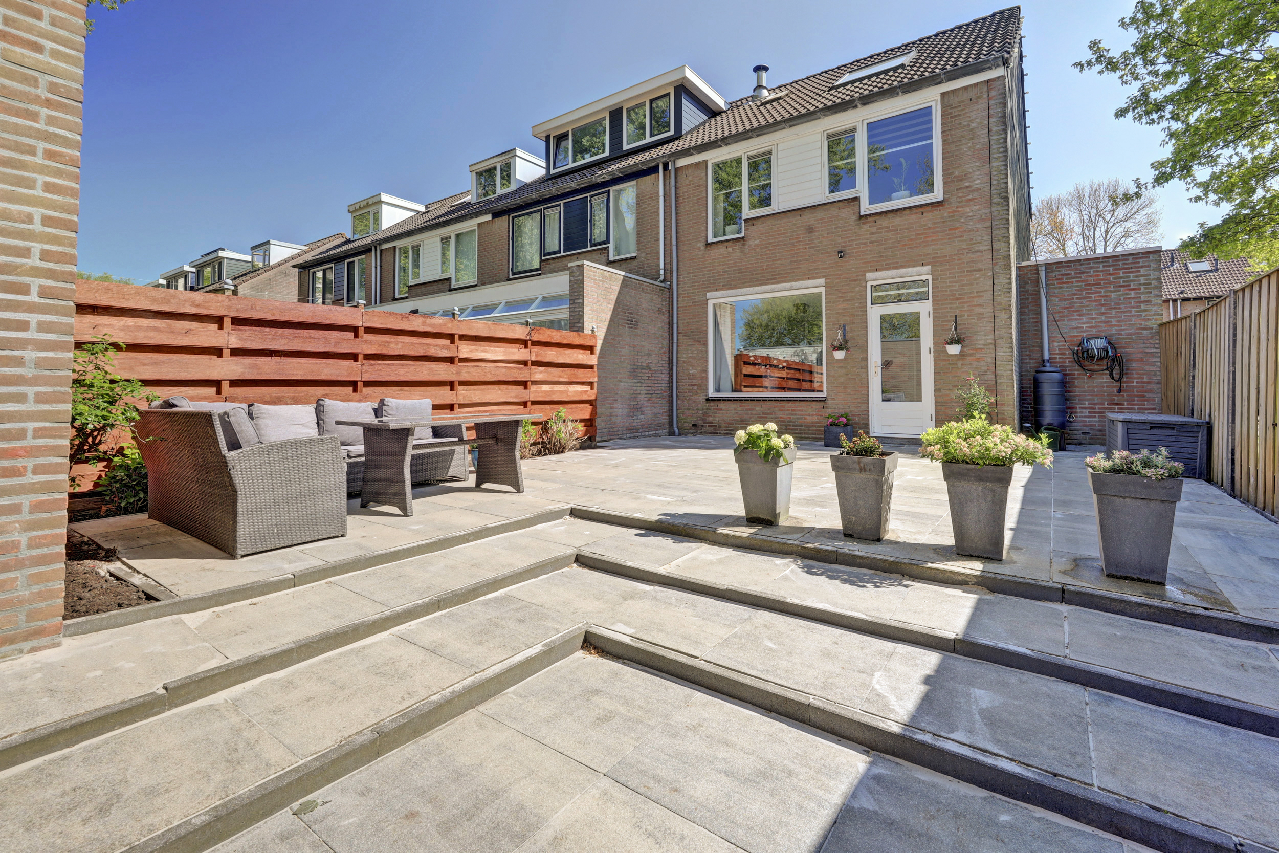 * De onderhoudsvriendelijke achtertuin is gelegen op het Noord-Westen voorzien van een stenen berging en een achterom.
