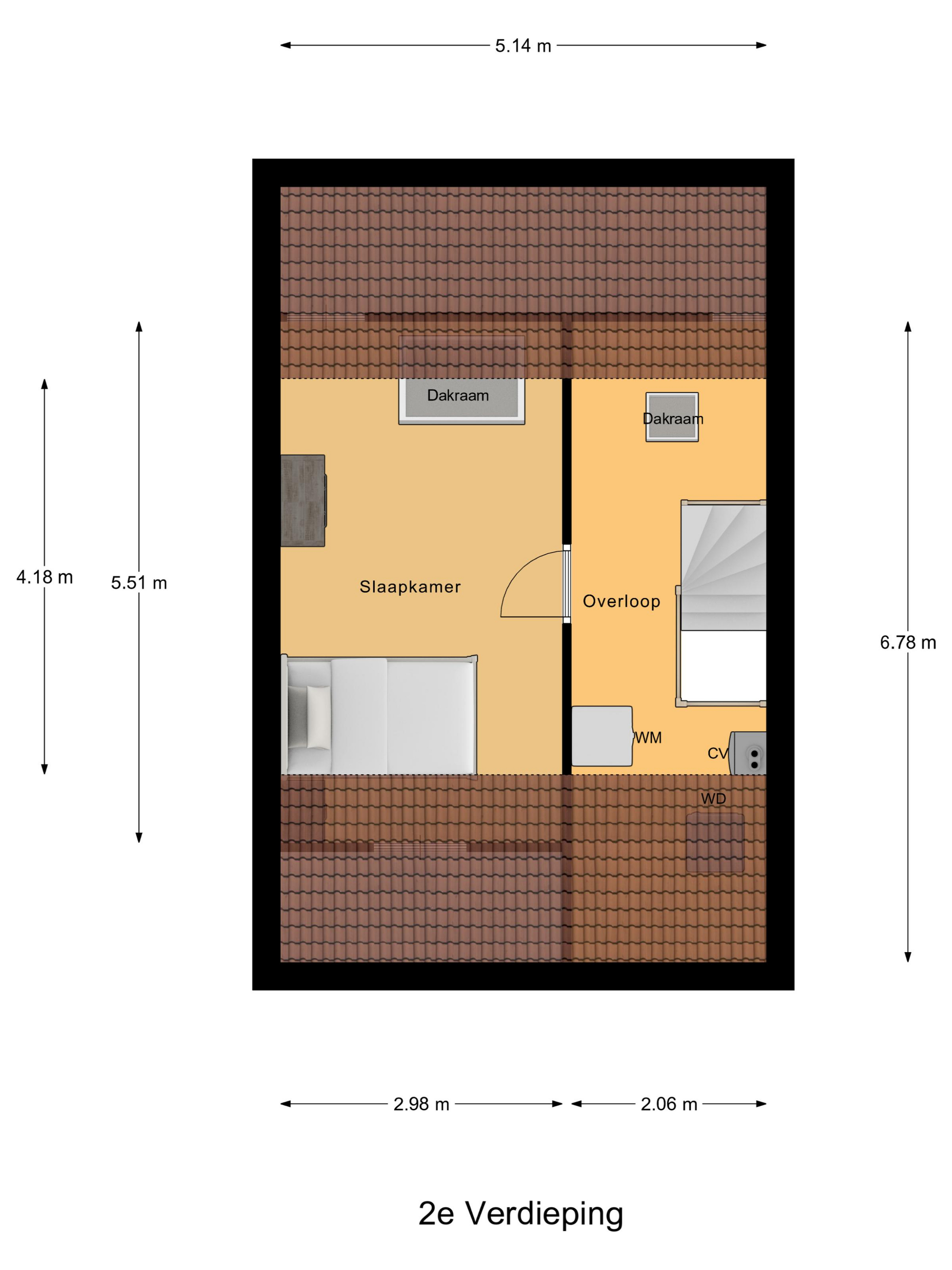 * Slaapkamer III voorzien van een dakraam.