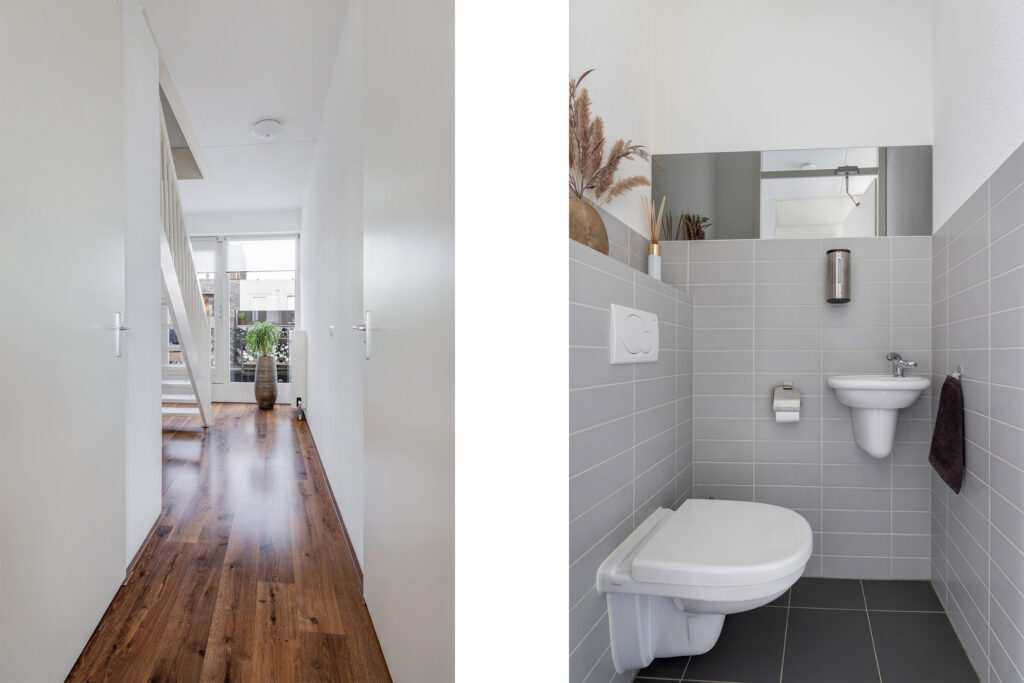 – Overloop met toiletruimte en vaste kast.