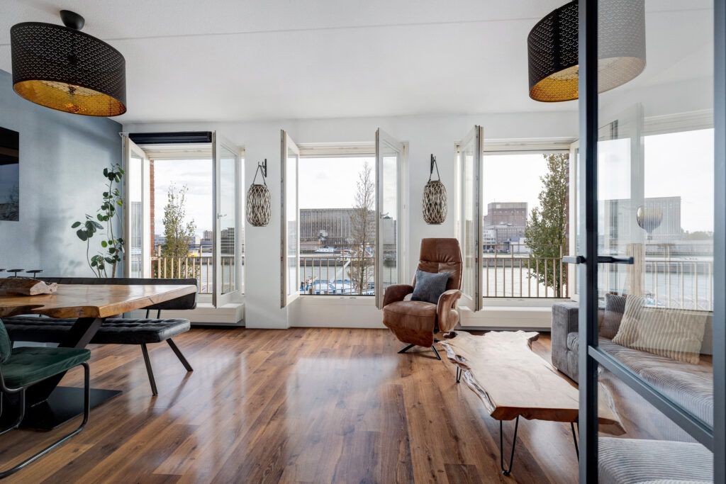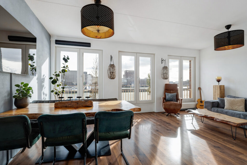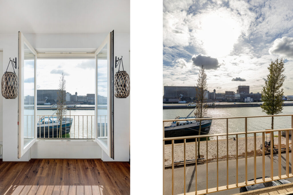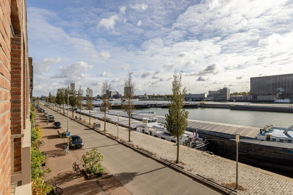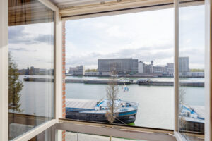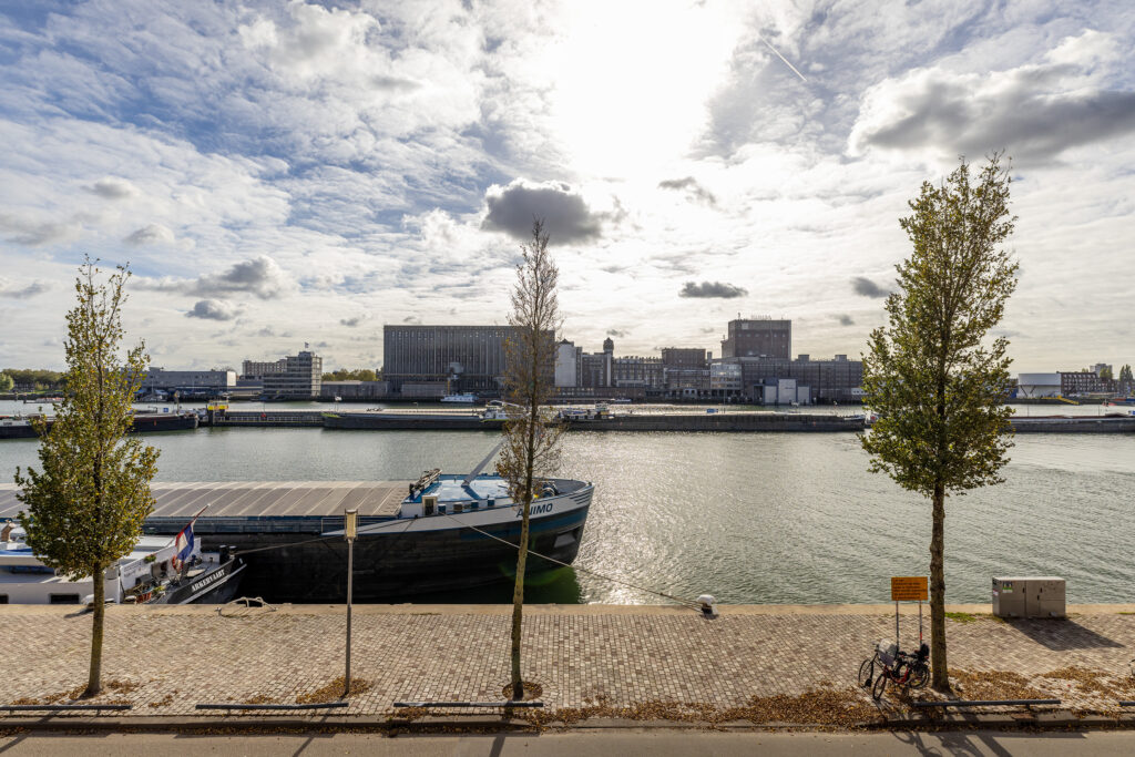 – Lichte woonkamer aan de voorzijde met drie Franse balkons en vrij uitzicht over de Maashaven.