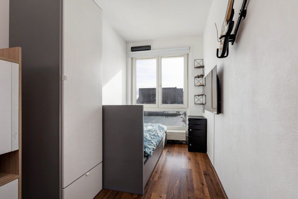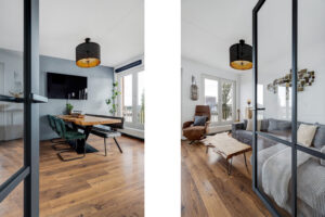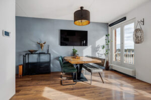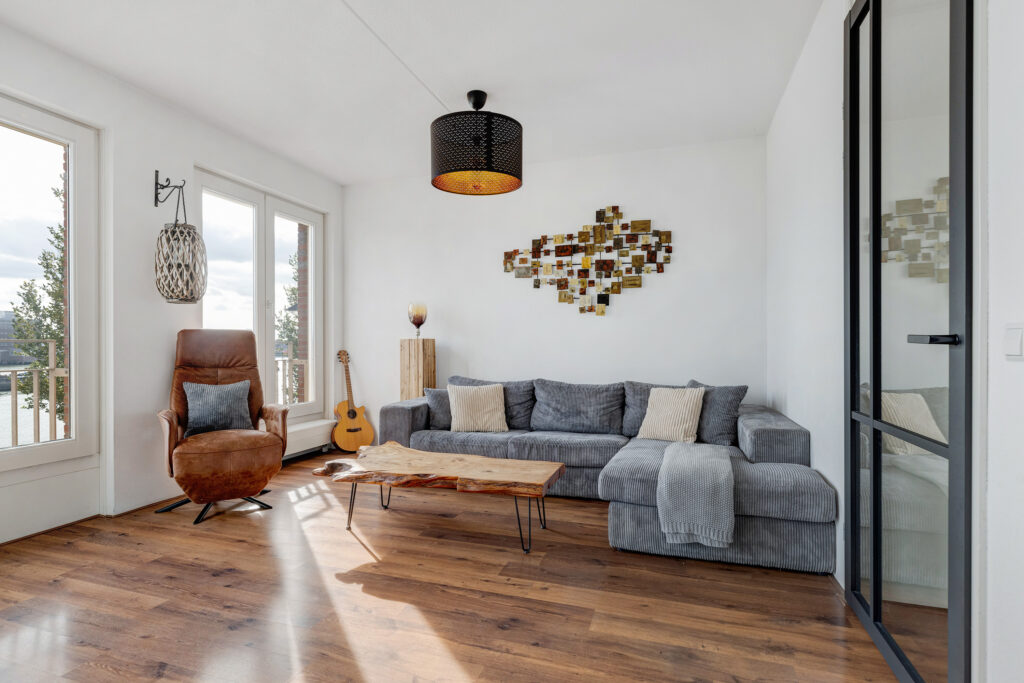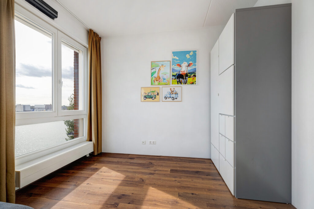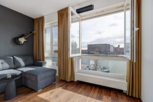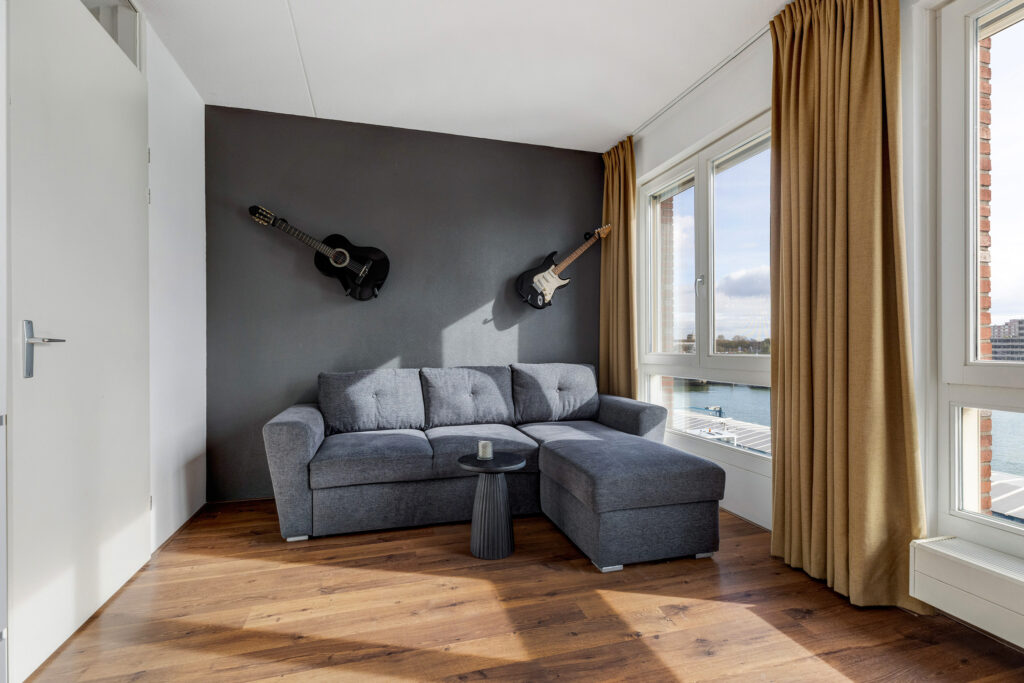 – Lichte woonkamer aan de voorzijde met drie Franse balkons en vrij uitzicht over de Maashaven.