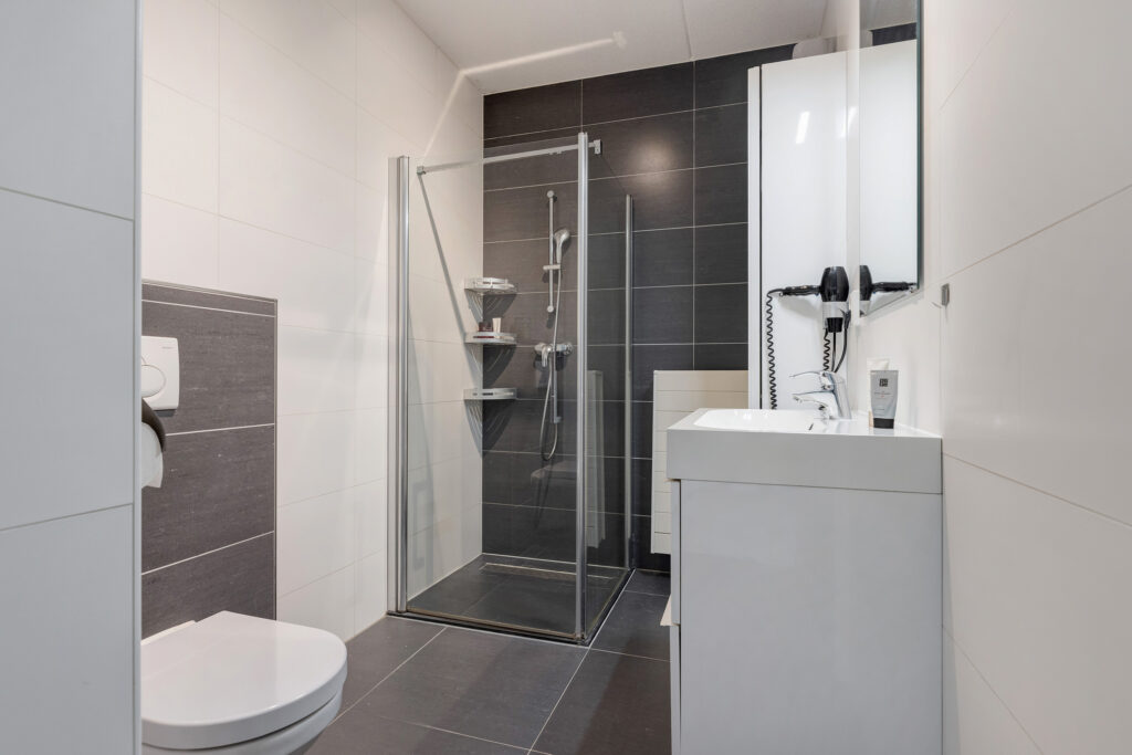 – Moderne badkamer met wastafel, inloopdouche en 2e toilet.