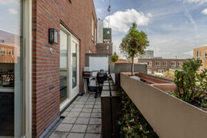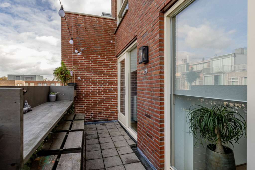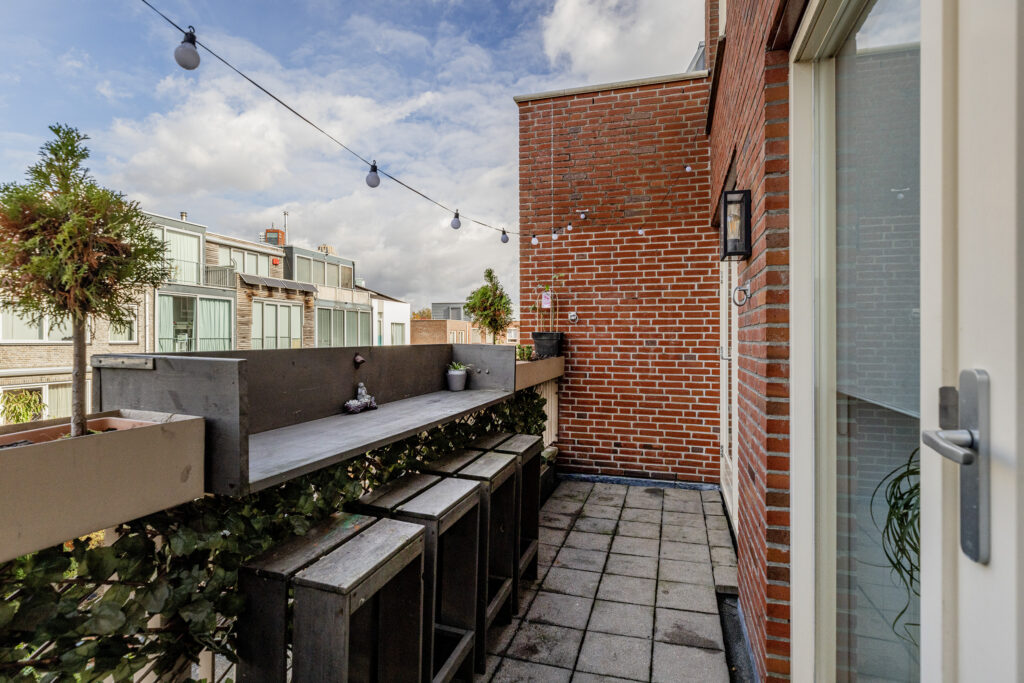 – Toegang tot het balkon aan de achterzijde. Het balkon is ook toegankelijk vanaf de overloop. Het balkon is voorzien van een handige bartafel, waardoor er ook voldoende ruimte overblijft voor de BBQ.