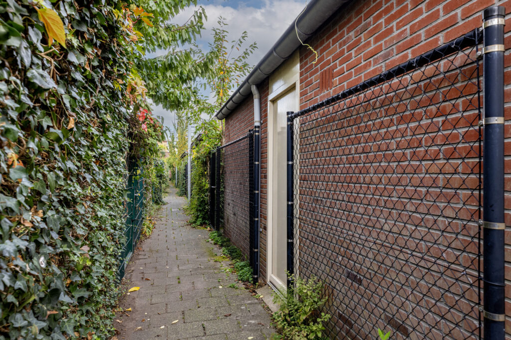 Via het pad aan de achterzijde is de stenen schuur te bereiken. Ook wordt in de overdekte parkeergarage een parkeerplaats aangeboden á € 25.000,- (verplichte afname).