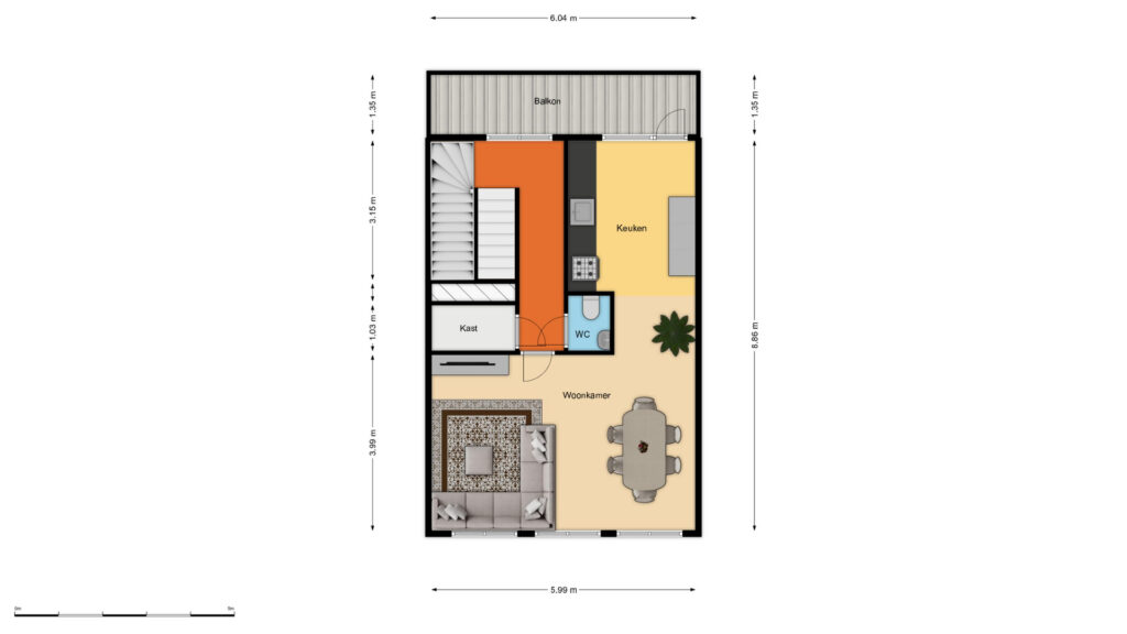 – Externe berging (schuur) op de begane grond: 6 m²