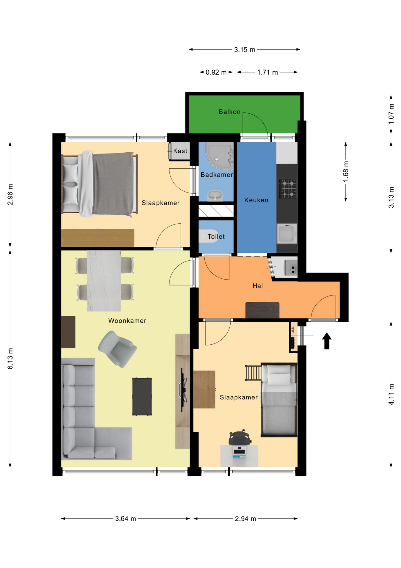 Welkom bij dit appartement op de derde verdieping, waar licht en functionaliteit samenkomen. De woning beschikt over een ruime woonkamer, twee slaapkamers en een balkon, wat het geheel tot een prettig en comfortabel thuis maakt.