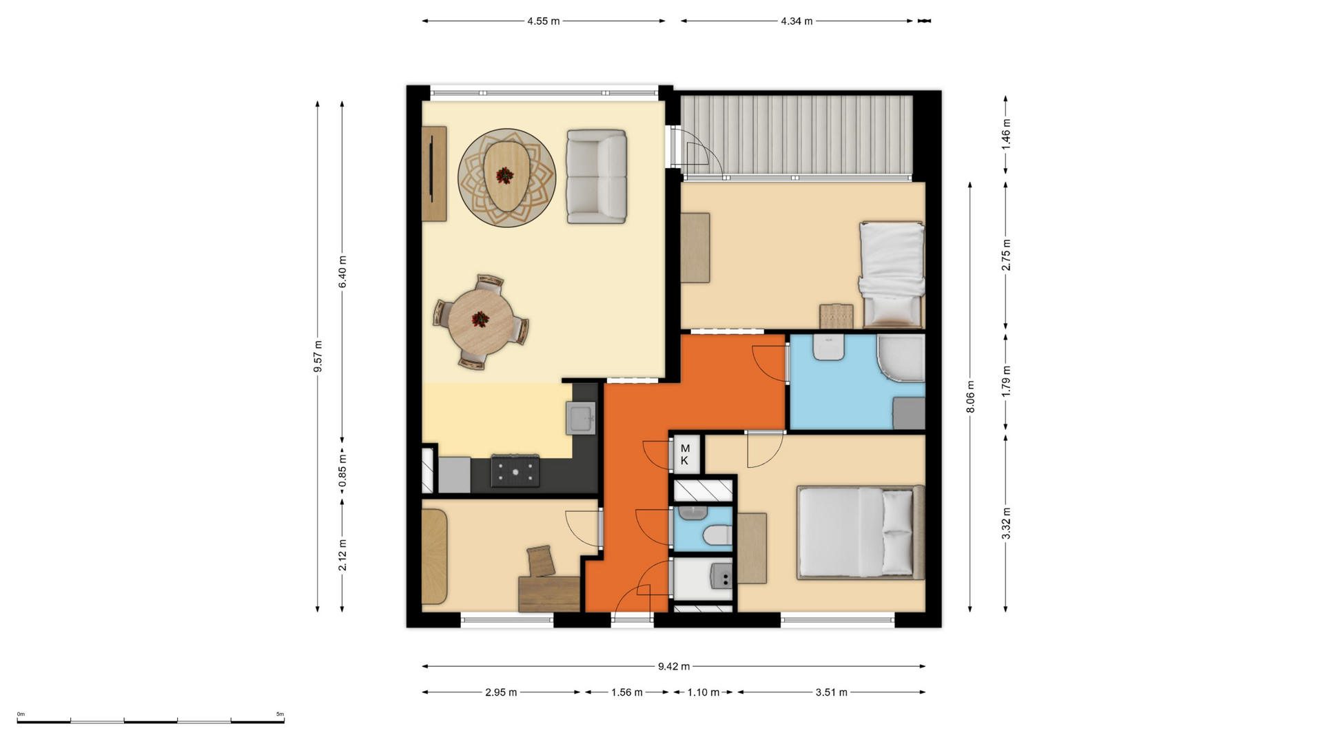 * Drie goed bemeten slaapkamers;