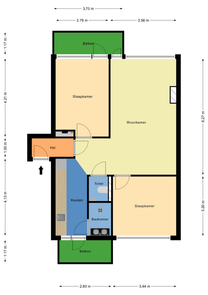 * Hal met meterkast en toegang tot de overige ruimtes.