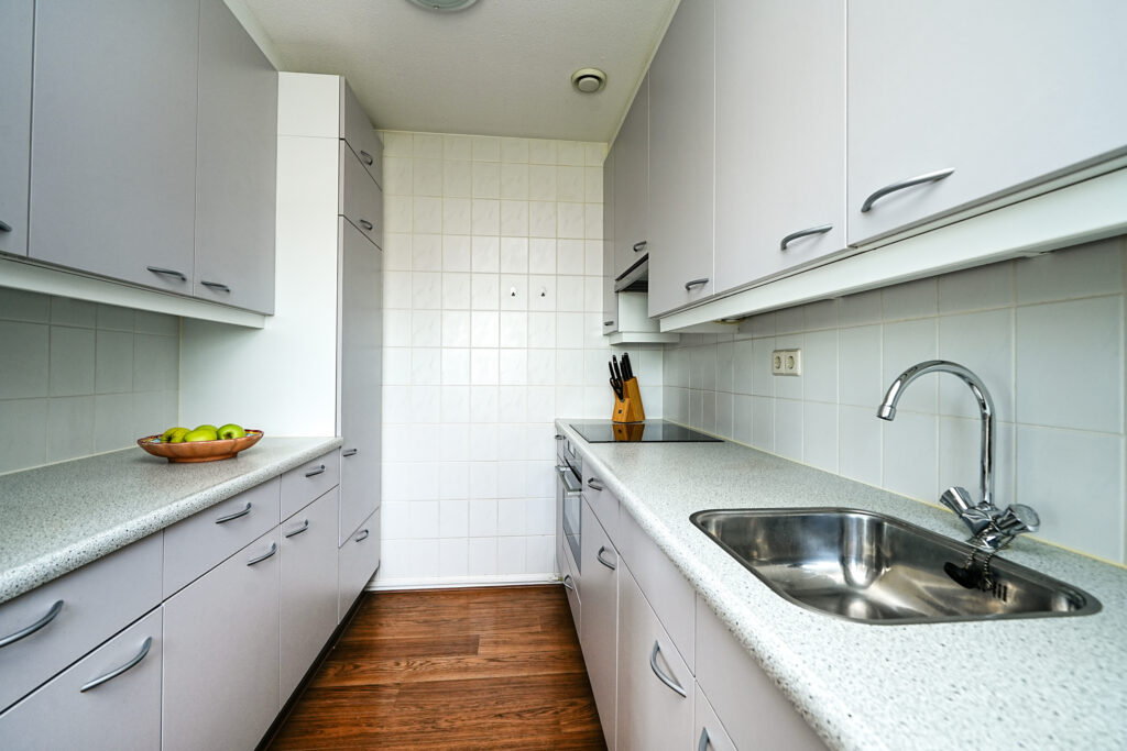 * De keuken is voorzien van inbouwapparatuur waaronder een inductie kookplaat, afzuigkap, combimagnetron, oven, vaatwasser en koelkast;
