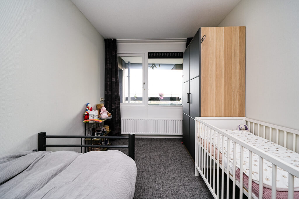 * Slaapkamer II bevindt zich eveneens aan de achterzijde van de woning en kijkt op het balkon;