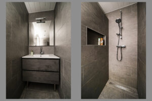 * De recent (2024) vernieuwde badkamer is voorzien van een inloopdouche, wastafelmeubel, handdoekradiator en hangkast;