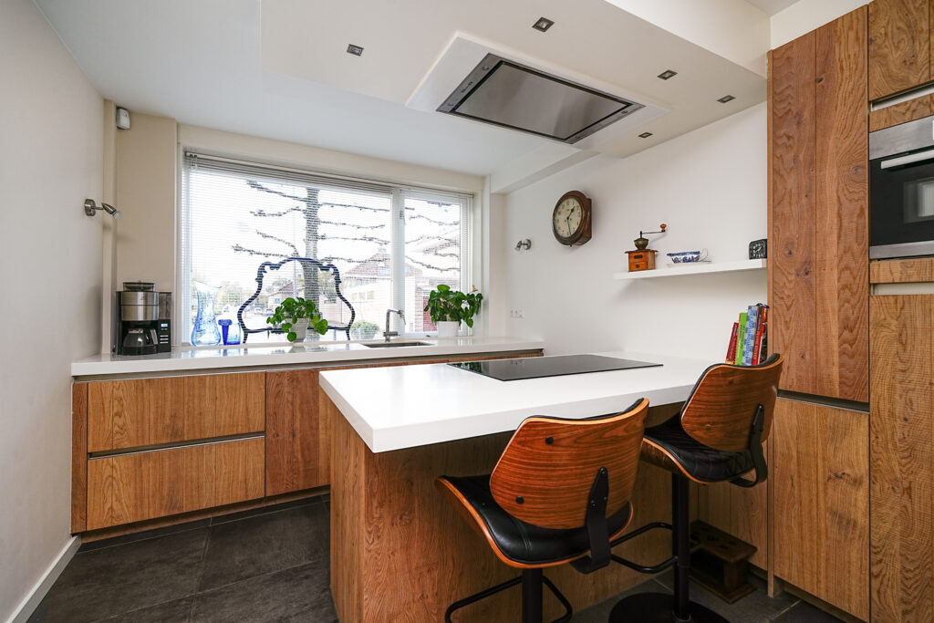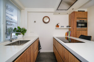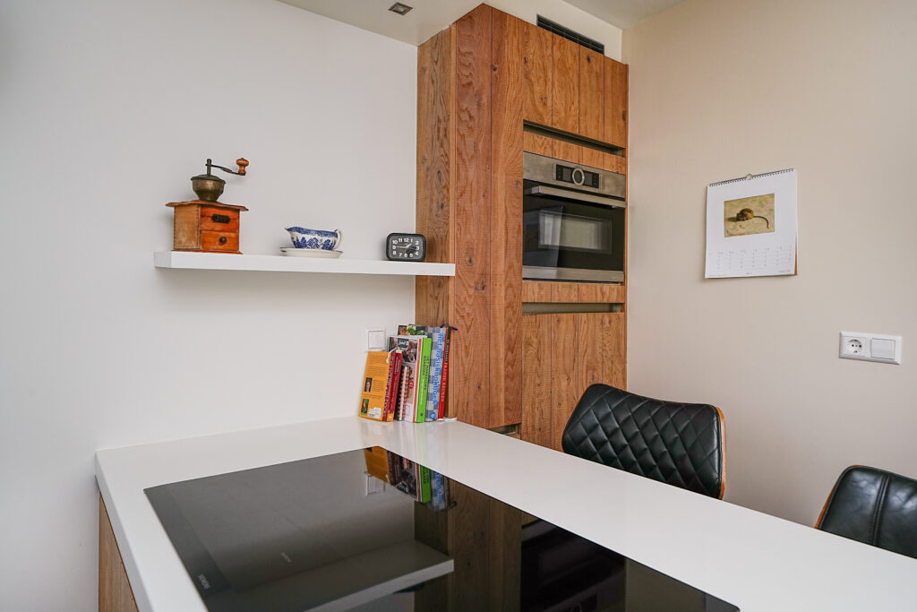 – Open keuken aan de voorzijde met kookeiland ingebouwde inductie kookplaat, combi-oven, afzuigkap, vaatwasser en koelkast.