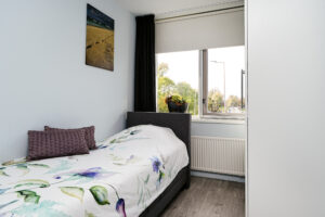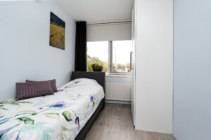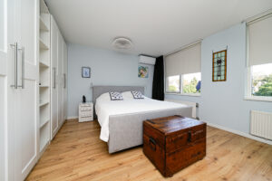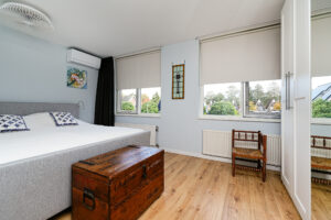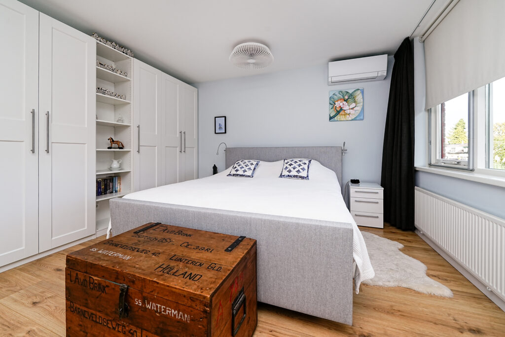 – Grote slaapkamer aan achterzijde (oorspronkelijk 2 slaapkamers) voorzien van airco en twee kastenwanden;