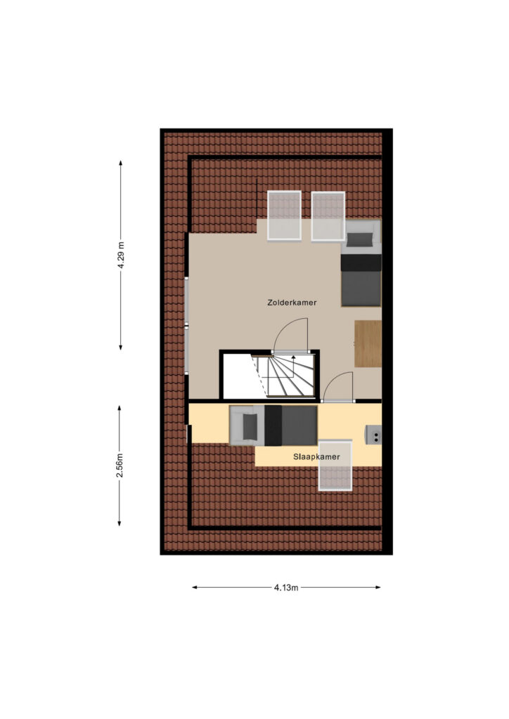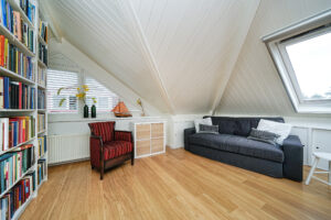 – Ruime zolderkamer (slaapkamer III) met en een dakkapel aan de voorzijde en dubbele Velux dakramen aan de achterzijde;