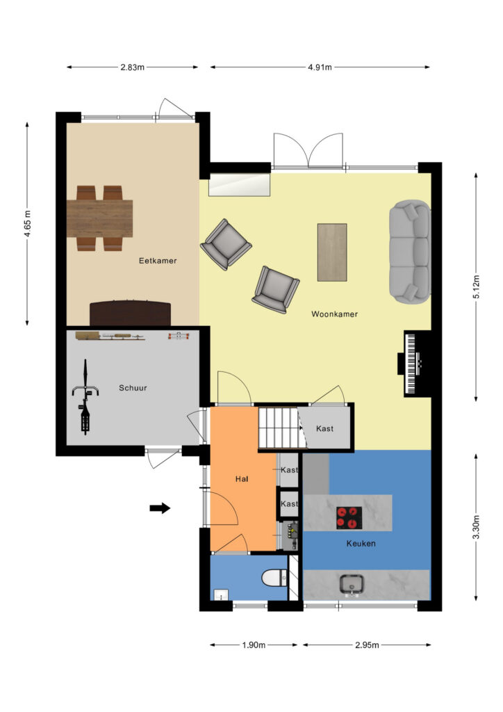 – Vanuit de hal is de inpandige berging bereikbaar;