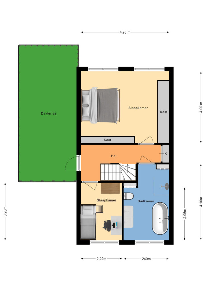 – Overloop met toegang tot het platte dak boven de garage met de mogelijkheid om een dakterras te realiseren;