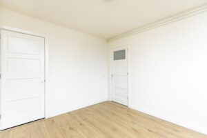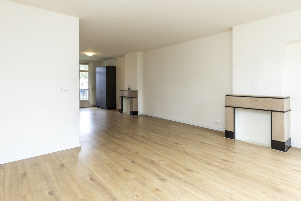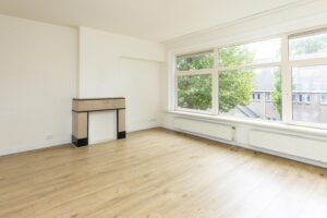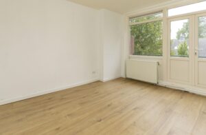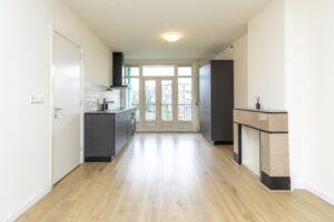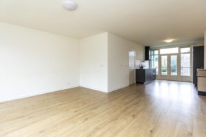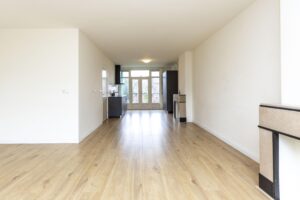 * Ruime doorzon woonkamer voorzien van een een laminaat vloer en gestucte wanden.
