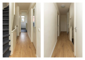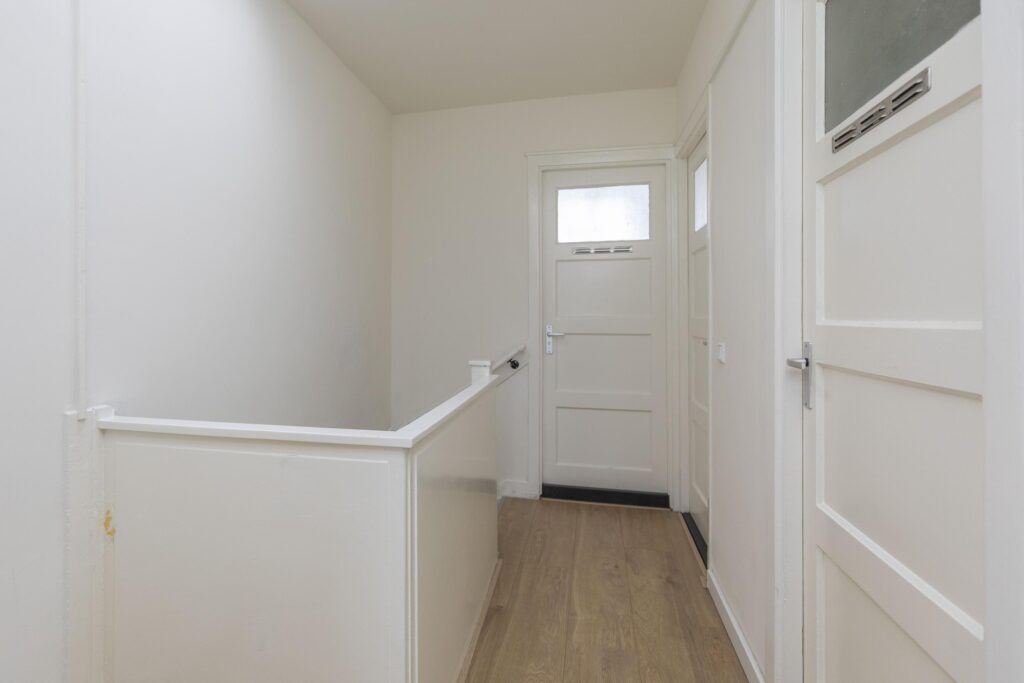 * Woningentree op eerste verdieping. Hal met een trap naar de 2e verdieping.
