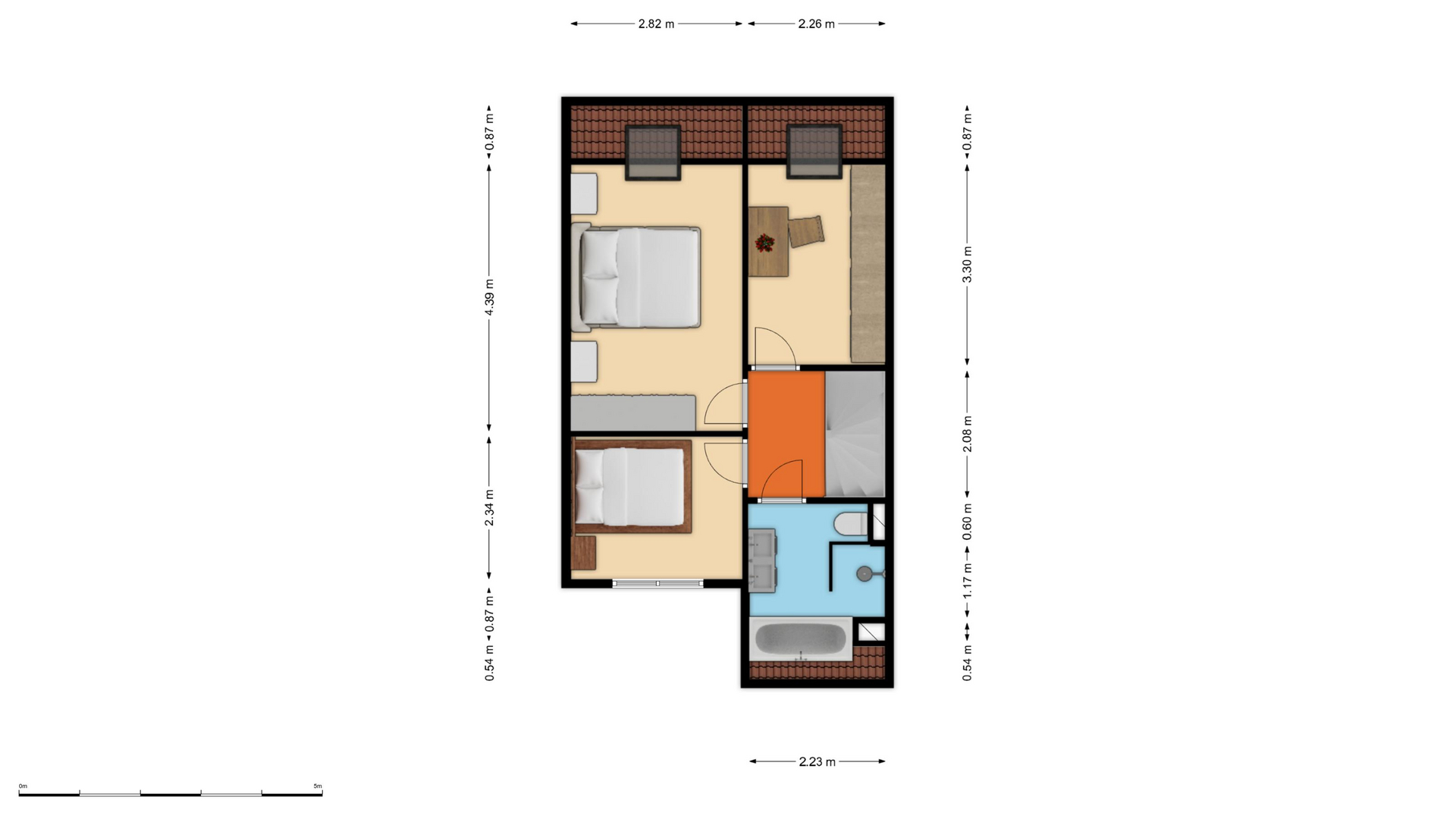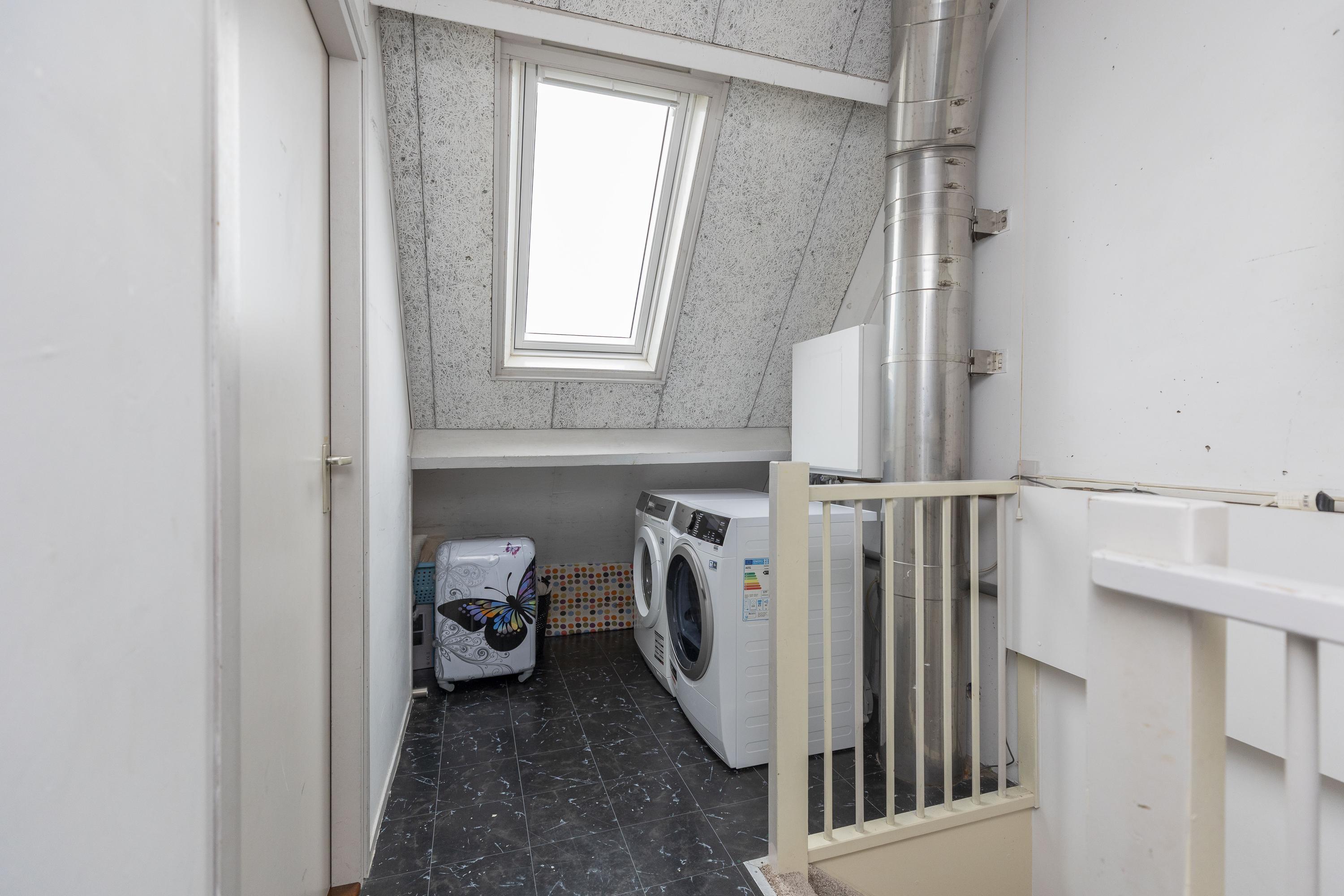 * Ruime voorzolder met dakraam, waar zich de cv-installatie en de wasmachineaansluiting bevinden;