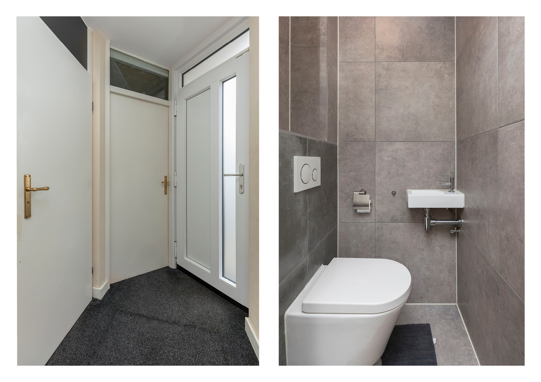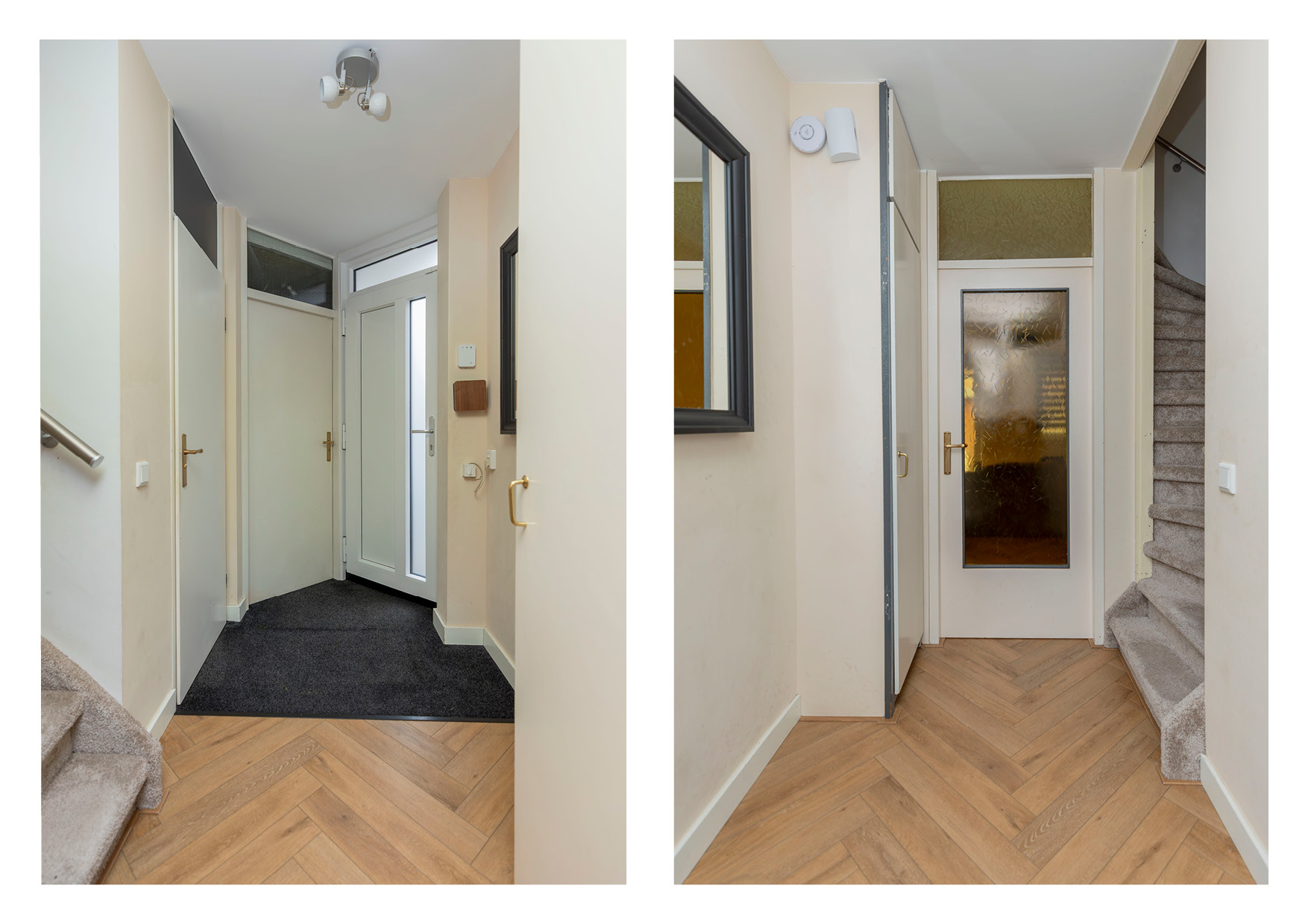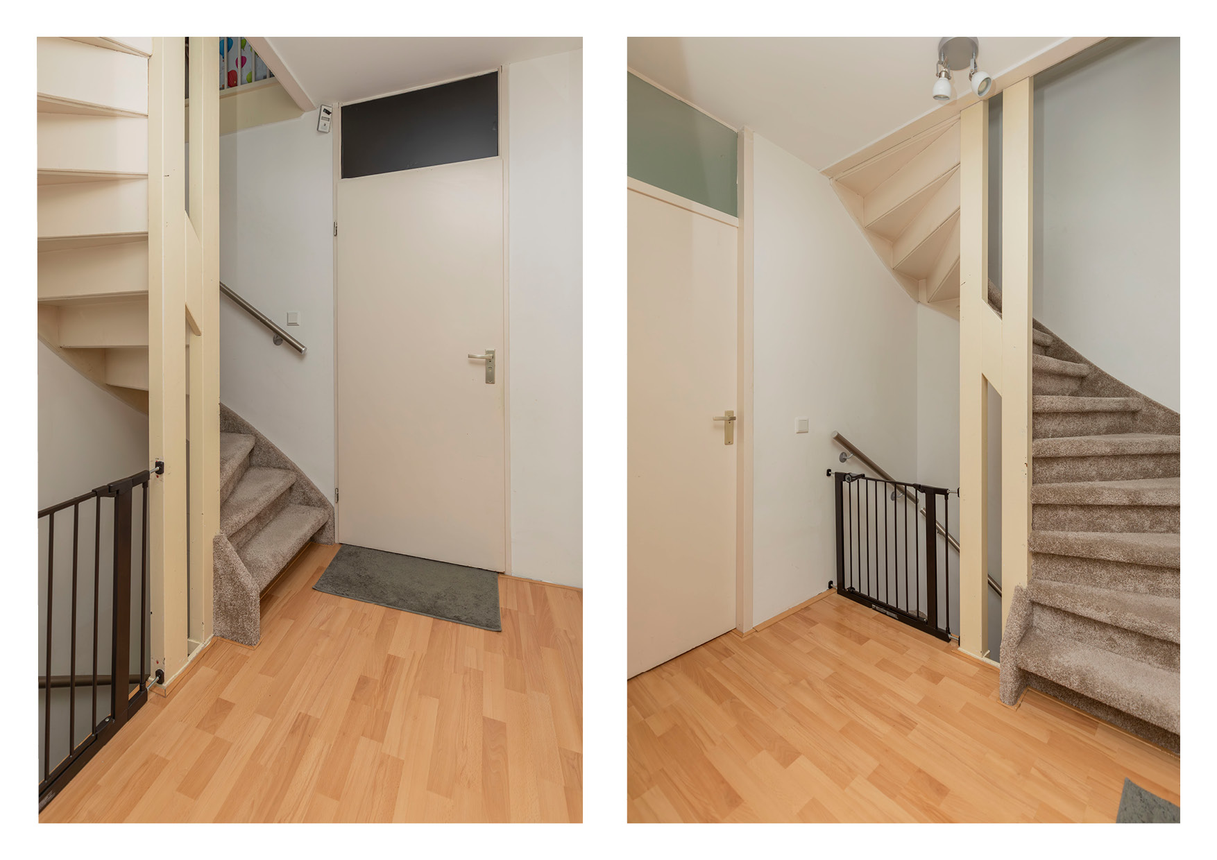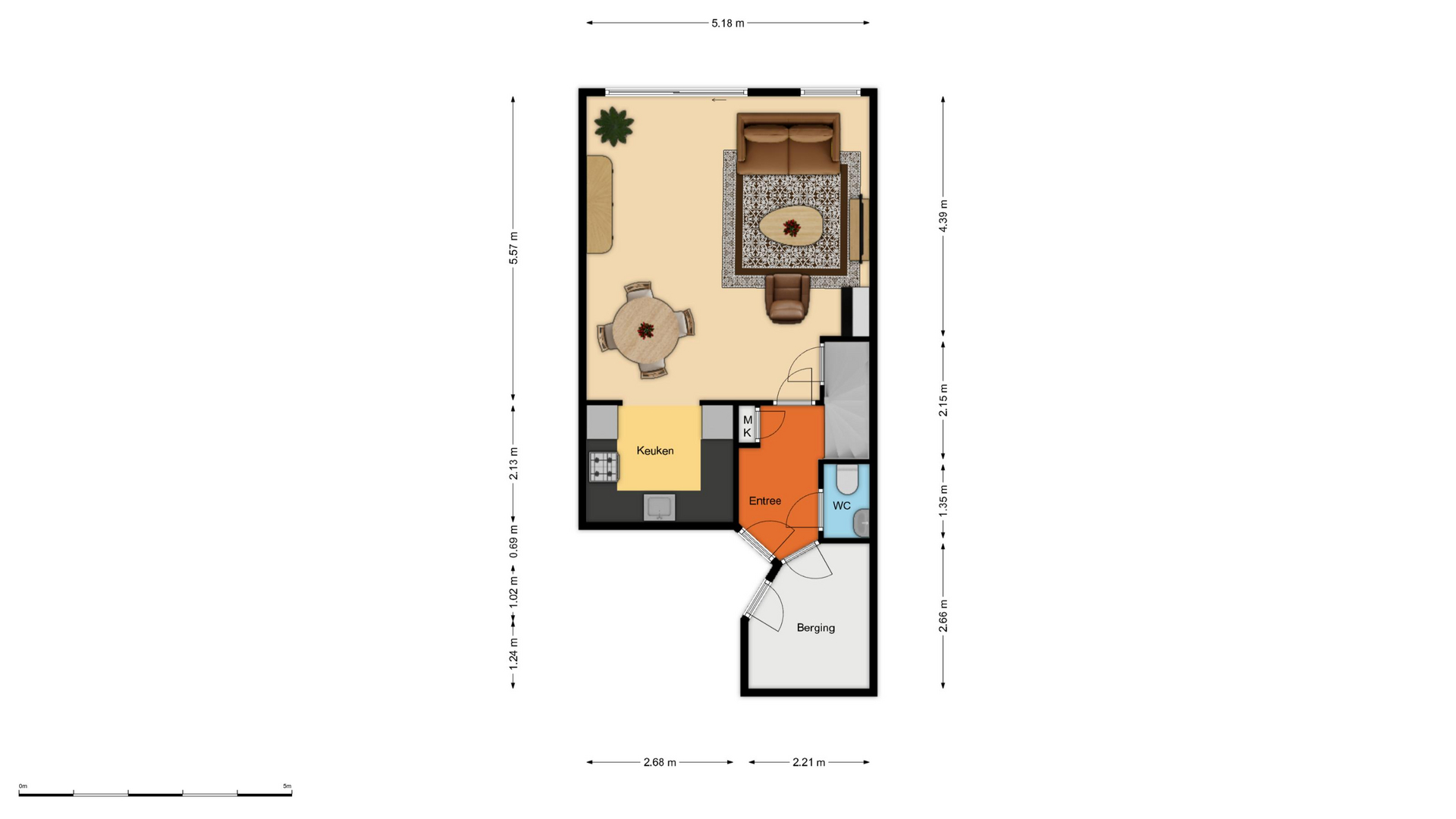 * Hal met meterkast, toilet en ruime berging geeft toegang tot de woonkamer. Hier bevindt zich tevens de trapopgang naar de eerste verdieping;