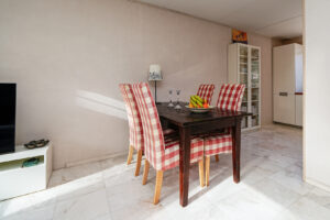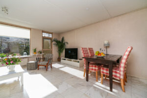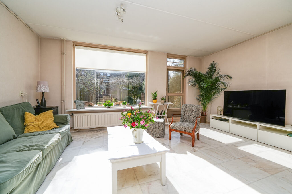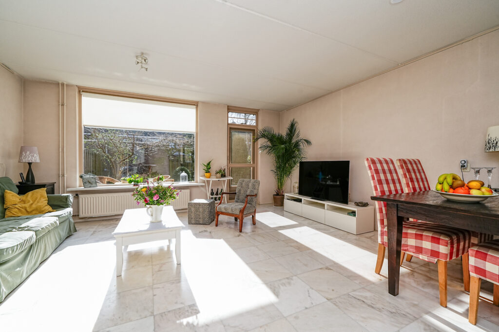 * De woonkamer is aan de achterzijde gelegen en voorzien van een marmeren vloer met vloerverwarming. De woonkamer geeft toegang tot de achtertuin.